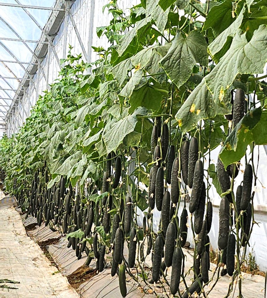 Además de cultivar jitomate hidropónico, tambien cultivamos pepino en naves de invernadero.