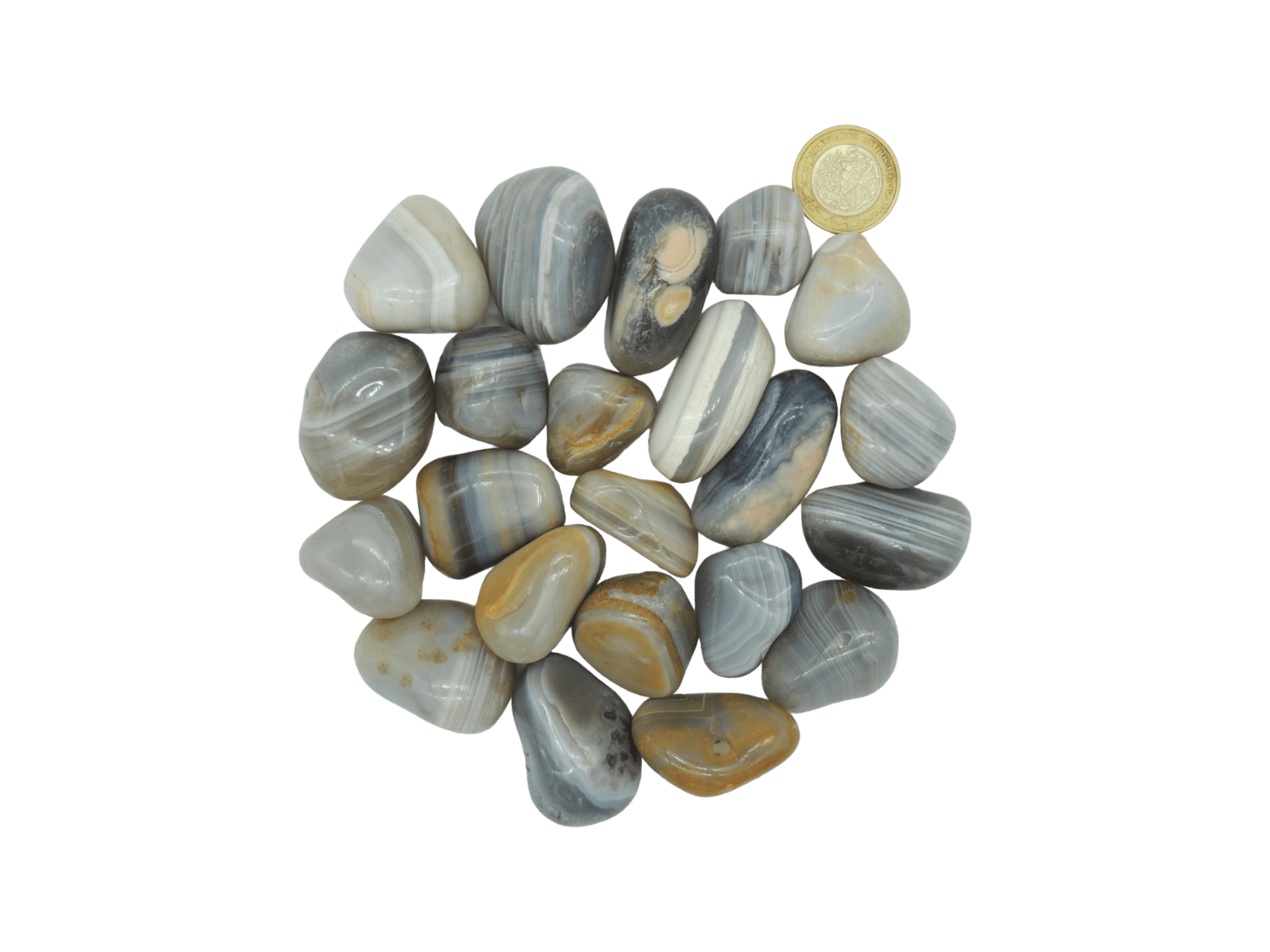La piedra rolada es amorfa y por ende puede variar el tamaño, Cualquier duda sobre este material favor de mandar whats app o por correo.