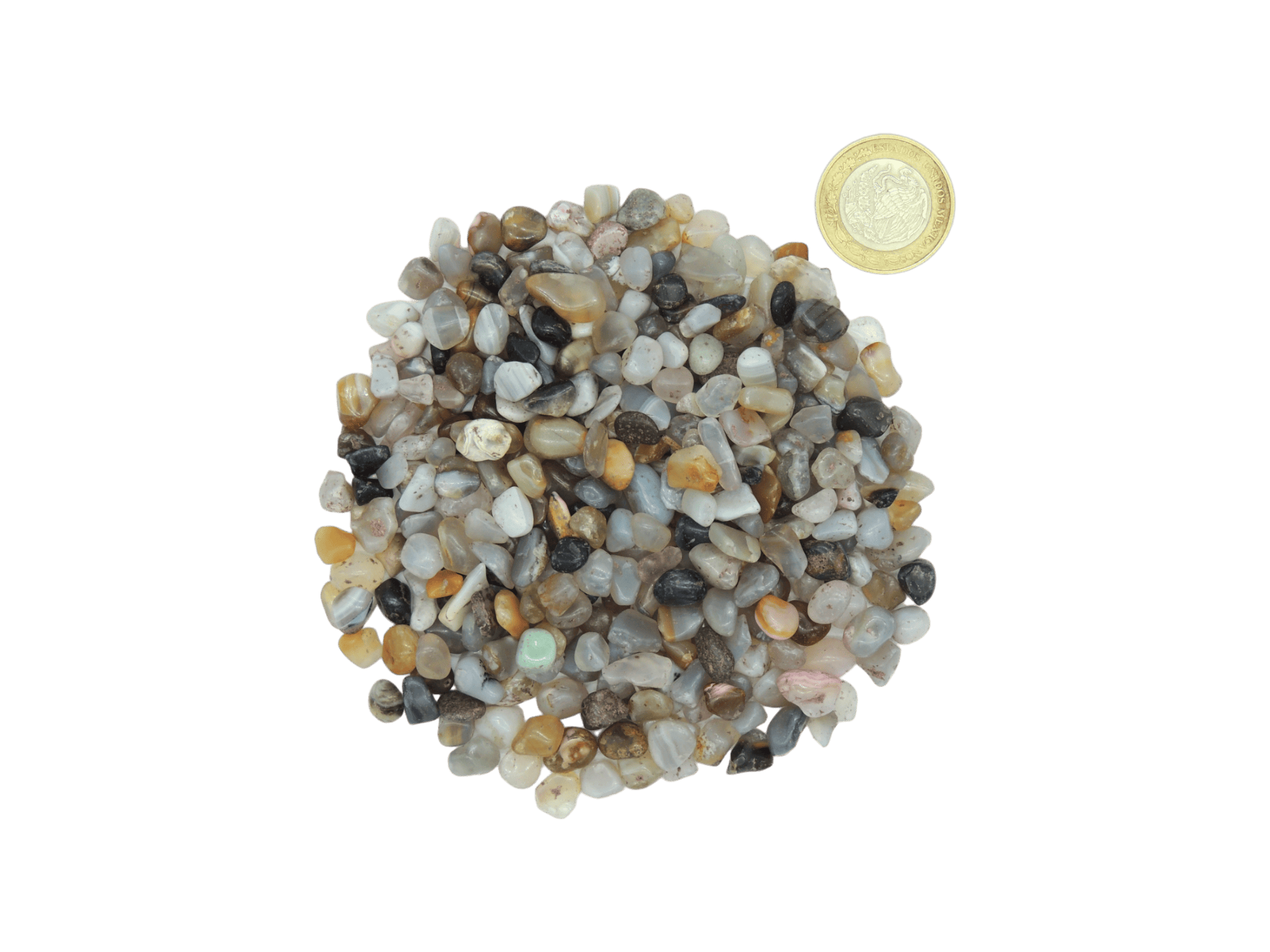 La piedra rolada es amorfa y por ende puede variar el tamaño, Cualquier duda sobre este material favor de mandar whats app o por correo.