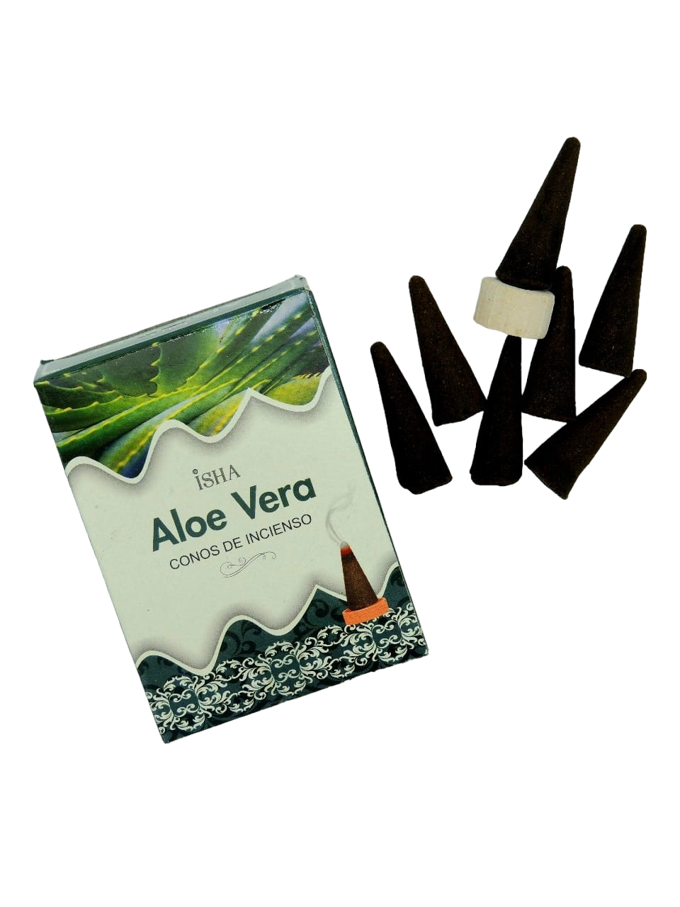 Incienso natural de aroma Aloe Vera, Caja que contiene 14 conos, elaborado en la India.