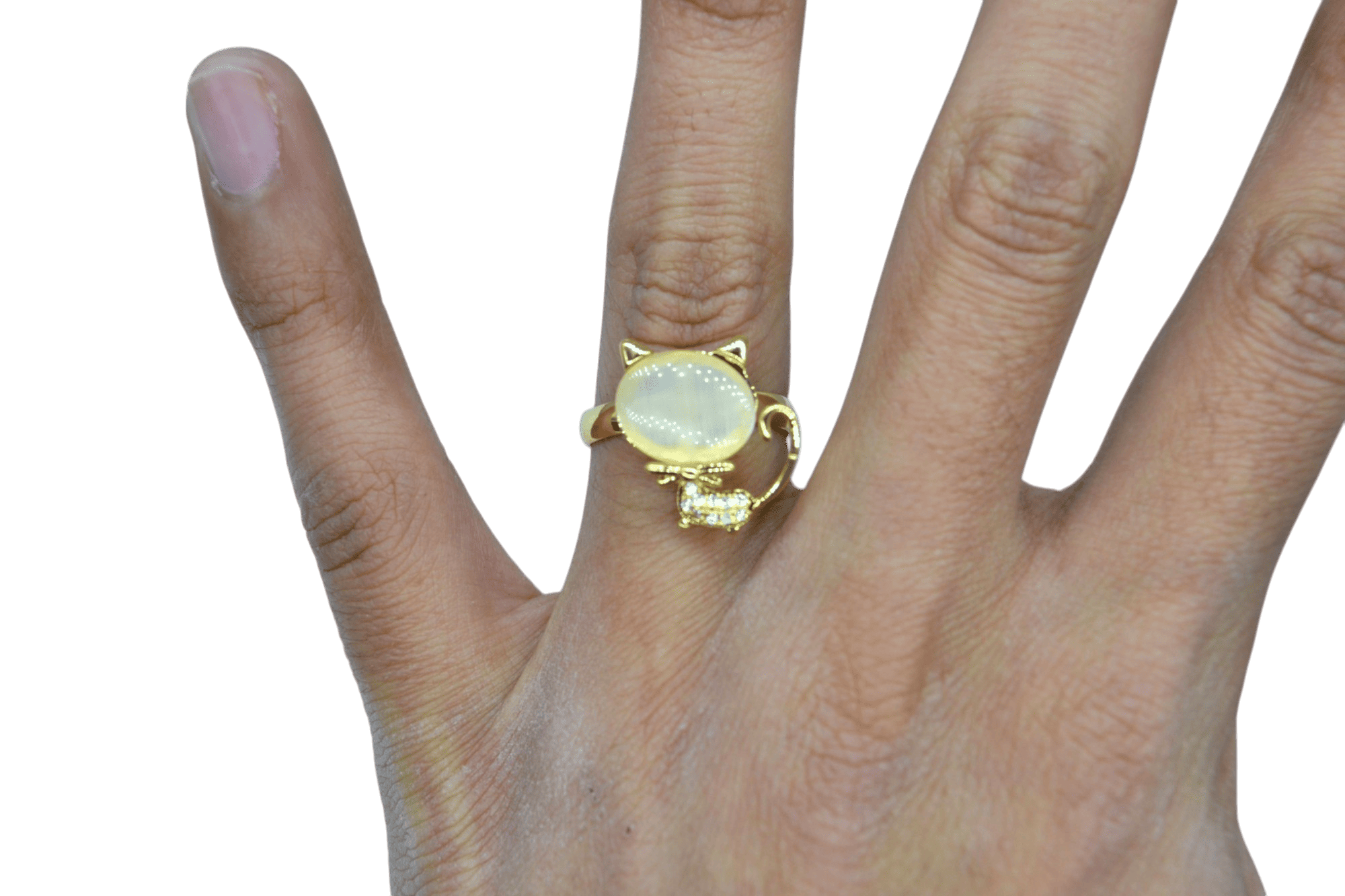 Anillo de latón ajustable en forma de gato.