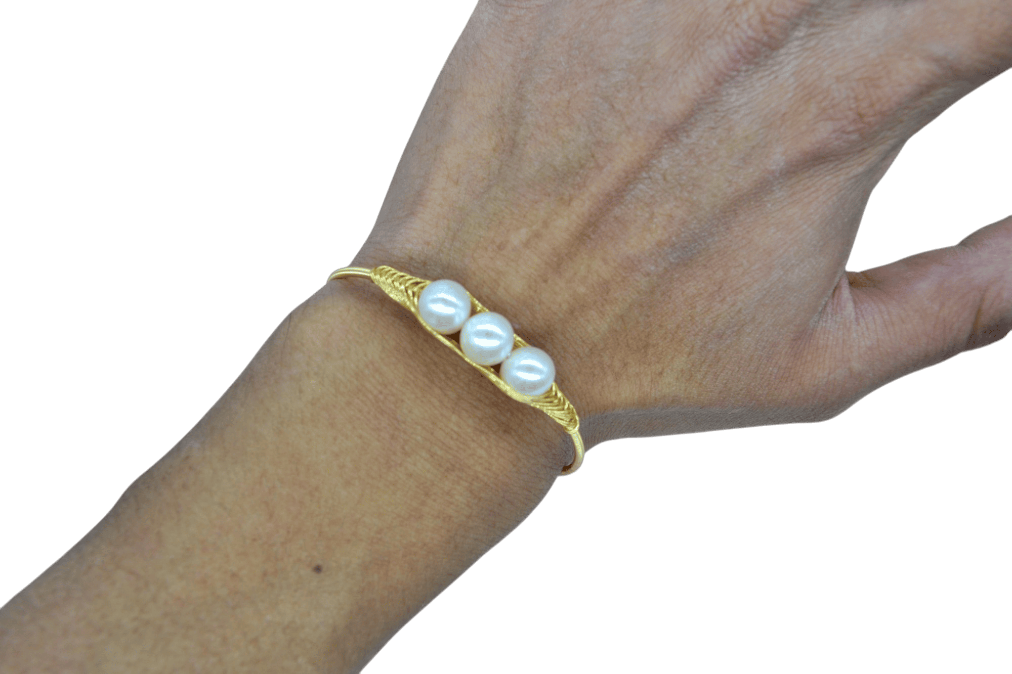 Brazalete con 3 perlas de cultivo engarzadas con alambre