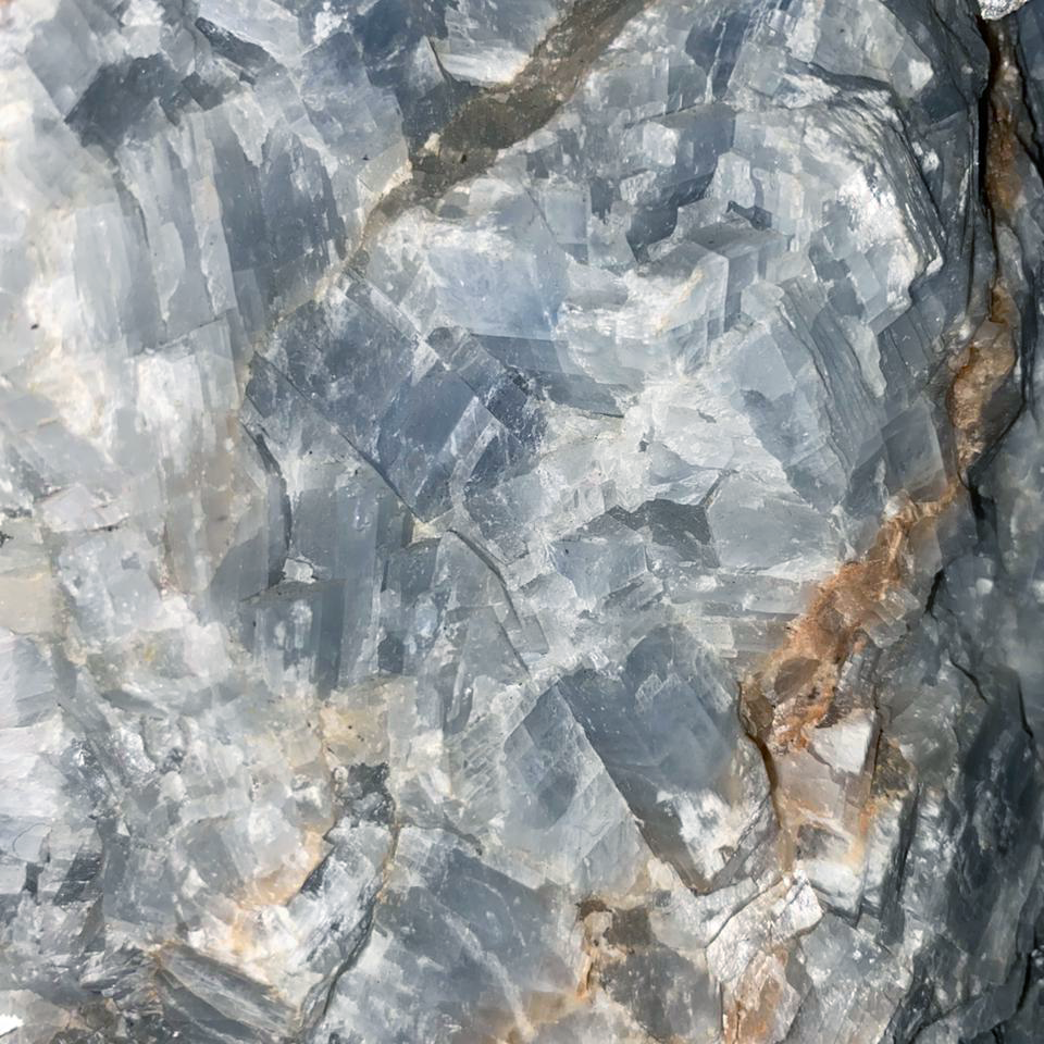 La calcita azul es un mineral muy común. Se forma a partir de carbonato de calcio. Esta se forma gracias a los procesos biológicos y sedimentarios de los corales, moluscos y placas. Esto quiere decir que estos se disolvieron hace millones de años para convertirse en calcita. Pertenece al grupo de los Carbonatos, cuenta con una dureza de 3 en la escala de Mohs, así que puede rayarse fácilmente con una moneda de cobre.