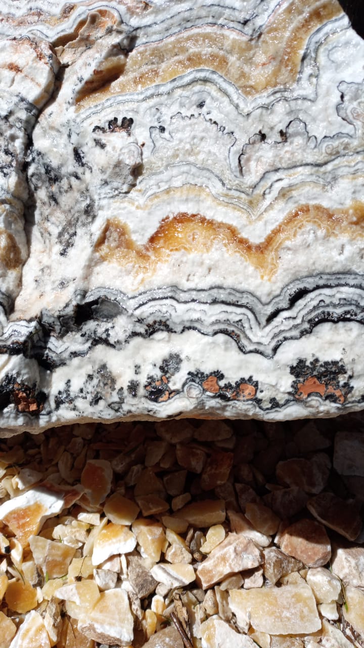 La calcita cebra es un mineral muy raro en la variedad de las calcitas. Fue encontrado recientemente en México. Se forma a partir de carbonato de calcio. Esta se forma gracias a los procesos biológicos y sedimentarios de los corales, moluscos y placas. Esto quiere decir que estos se disolvieron hace millones de años para convertirse en calcita. Pertenece al grupo de los Carbonatos, cuenta con una dureza de 3 en la escala de Mohs, así que puede rayarse fácilmente con una moneda de cobre. En el lado esotérico, ayuda a remover sentimientos reprimidos y descuidados. Aumenta la fuerza interior y por lo tanto, el autoestima.