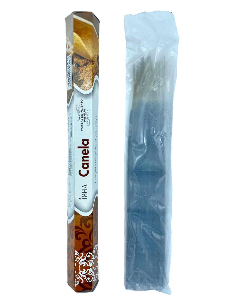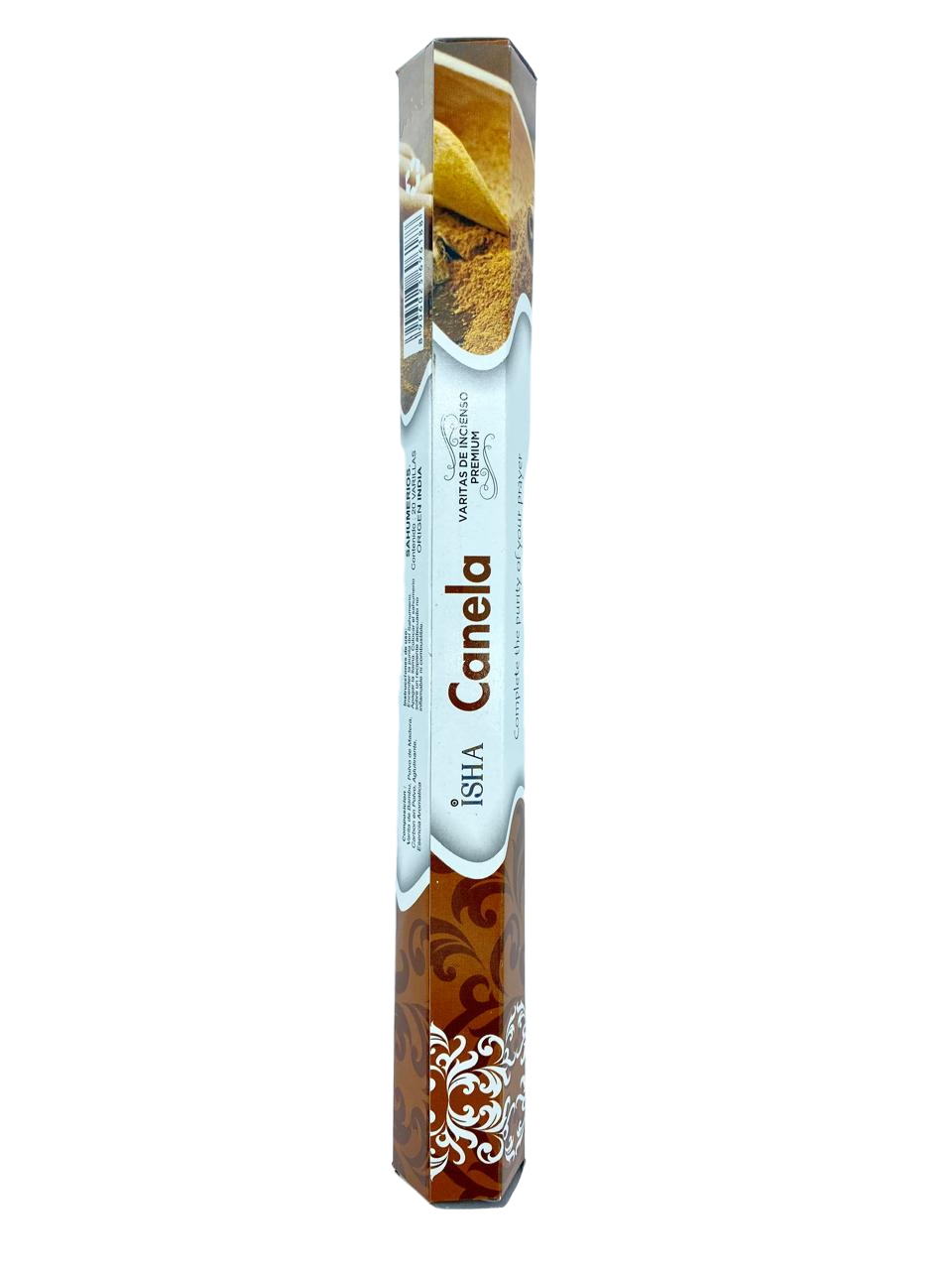 Incienso natural de aroma Canela, sobre que contiene 20 varitas, elaborado en la India.
