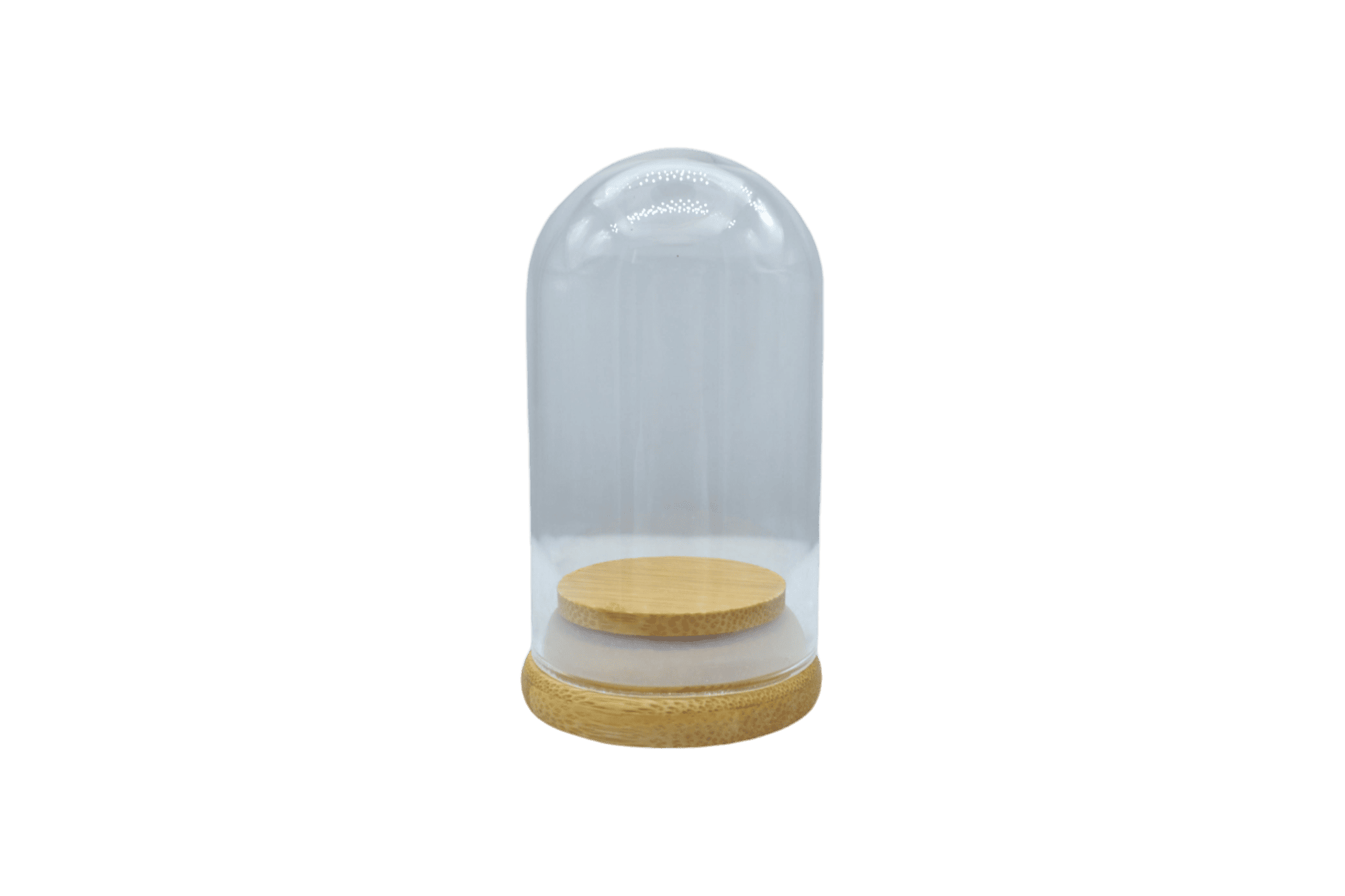 Exhibidor para joyería o algún mineral de colección tipo capelo con base de madera, excelente para exhibir tu joyería o artículo dándole un toque único y elegante.