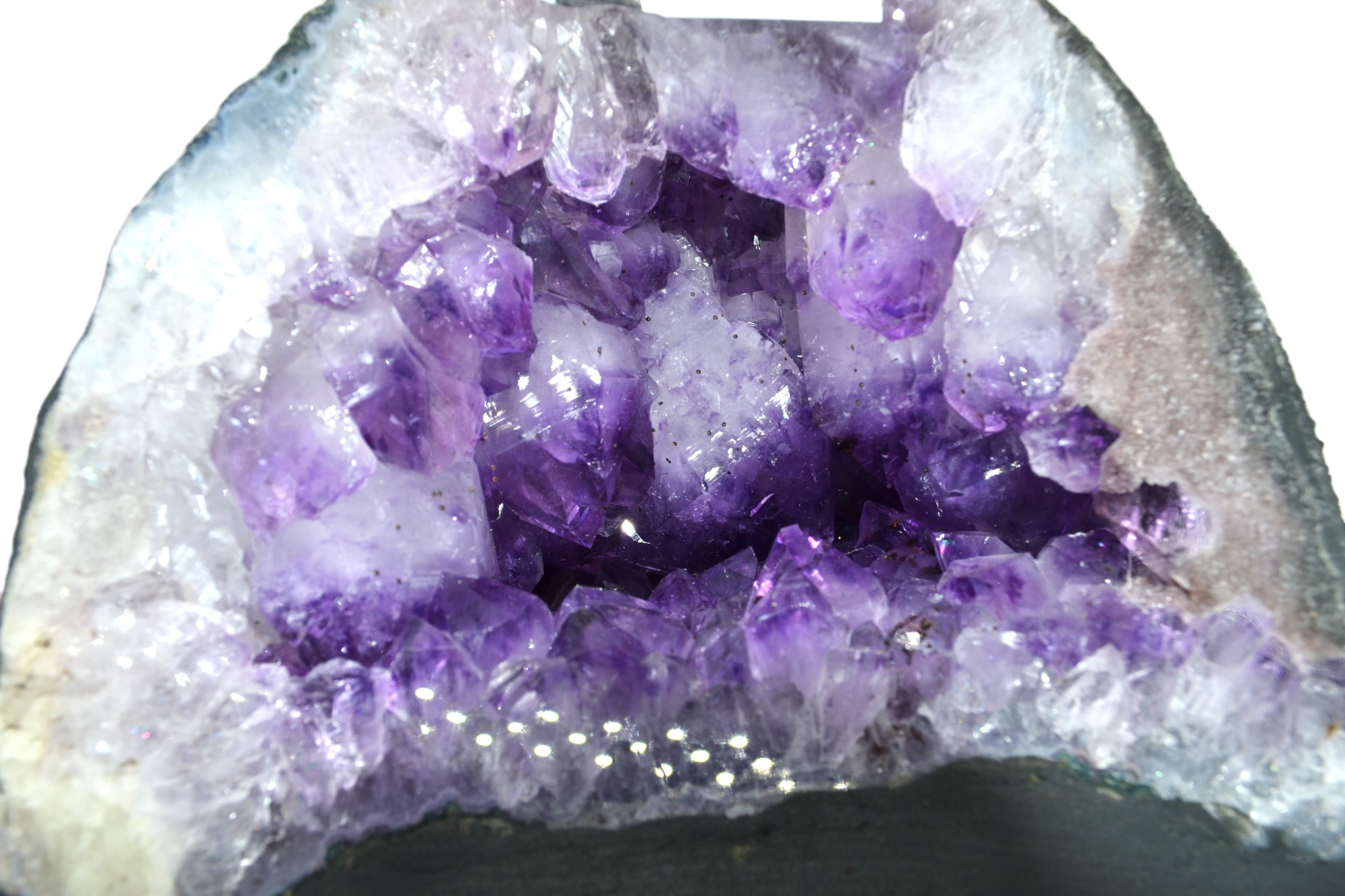 Propiedades Espirituales: La amatista es conocida como la piedra de la armonía, la transmutación y la espiritualidad. Corresponde al 6º chakra, situado en el entrecejo. Ayuda a calmar la mente y a relajarnos, propiciando de esta manera la conexión con nuestra intuición. Es por este motivo que la amatista suele ser un buen complemento para la práctica de la meditación, ya sea sosteniendo el mineral entre las manos, colocándolo encima del entrecejo o corazón, o situando un cristal de amatista enfrente de nosotros.