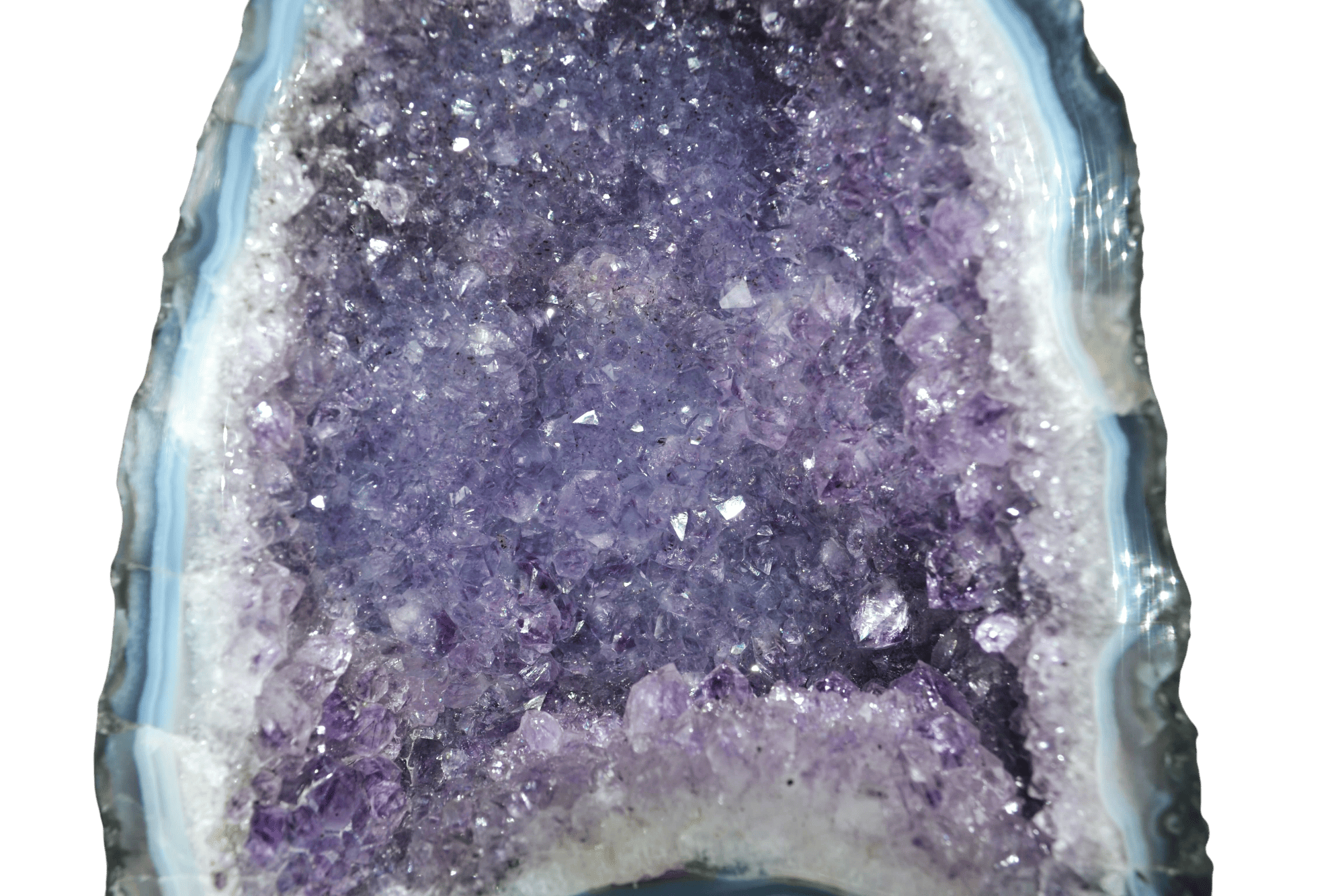 : La amatista es conocida como la piedra de la armonía, la transmutación y la espiritualidad. Corresponde al 6º chakra, situado en el entrecejo. Ayuda a calmar la mente y a relajarnos, propiciando de esta manera la conexión con nuestra intuición. Es por este motivo que la amatista suele ser un buen complemento para la práctica de la meditación, ya sea sosteniendo el mineral entre las manos, colocándolo encima del entrecejo o corazón, o situando un cristal de amatista enfrente de nosotros.