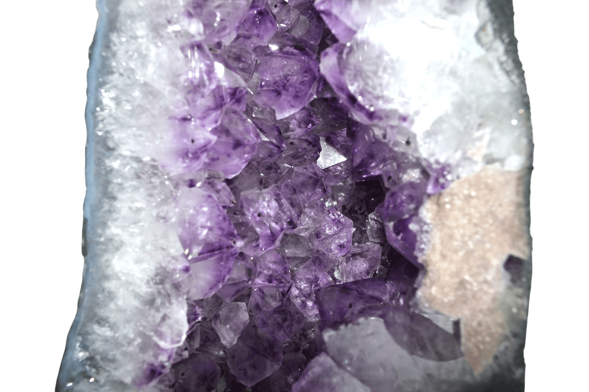 Propiedades Espirituales: La amatista es conocida como la piedra de la armonía, la transmutación y la espiritualidad. Corresponde al 6º chakra, situado en el entrecejo. Ayuda a calmar la mente y a relajarnos, propiciando de esta manera la conexión con nuestra intuición. Es por este motivo que la amatista suele ser un buen complemento para la práctica de la meditación, ya sea sosteniendo el mineral entre las manos, colocándolo encima del entrecejo o corazón, o situando un cristal de amatista enfrente de nosotros.