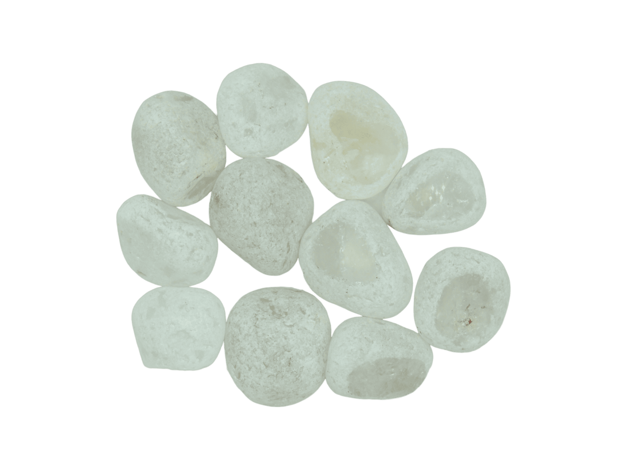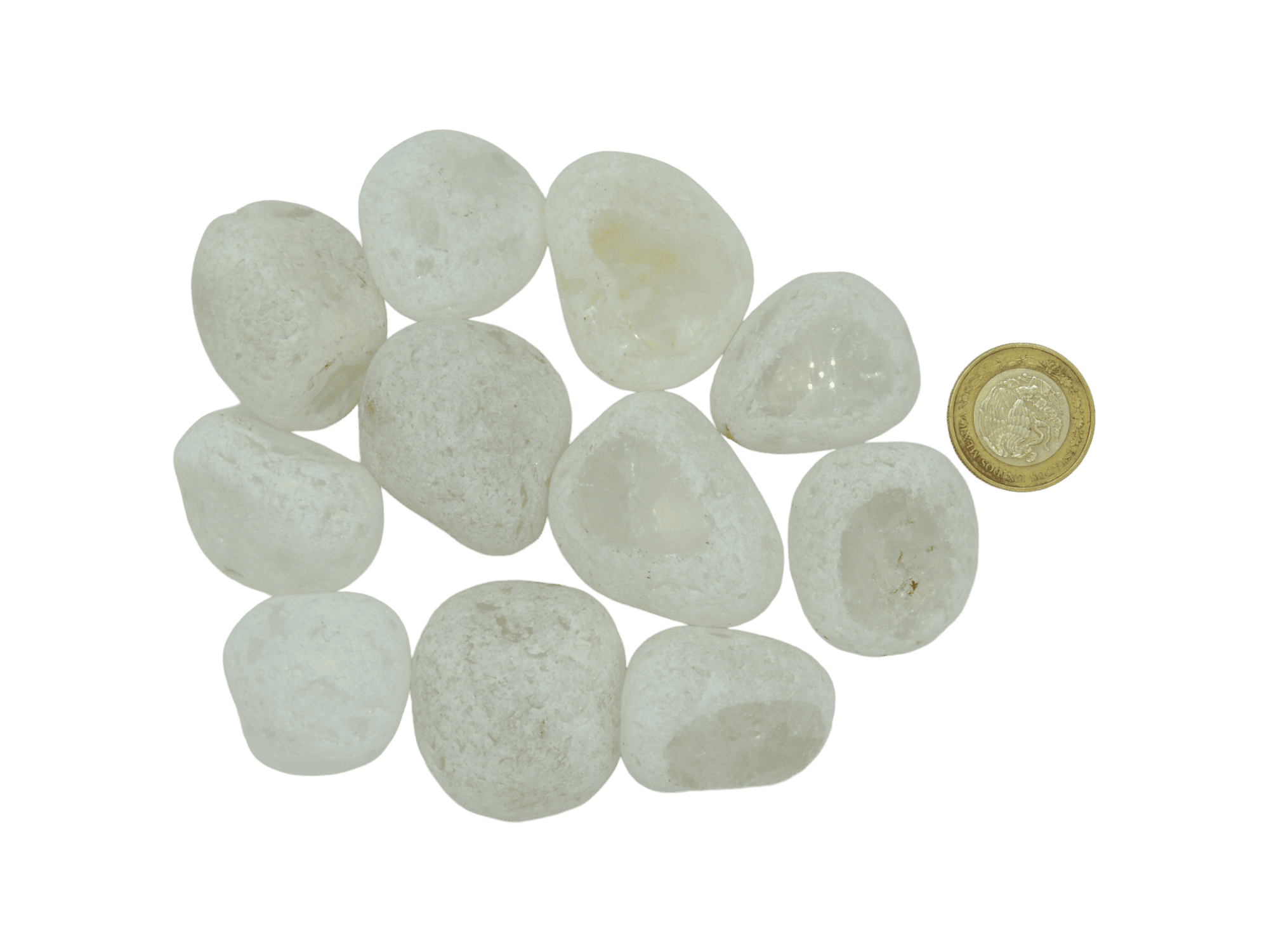 Tipo de Mineral: Rolado en río. El cuarzo de río se le llama así, porque son piedras que han sufrido un proceso natural de rolado en los ríos que pasan por minas de cuarzo.