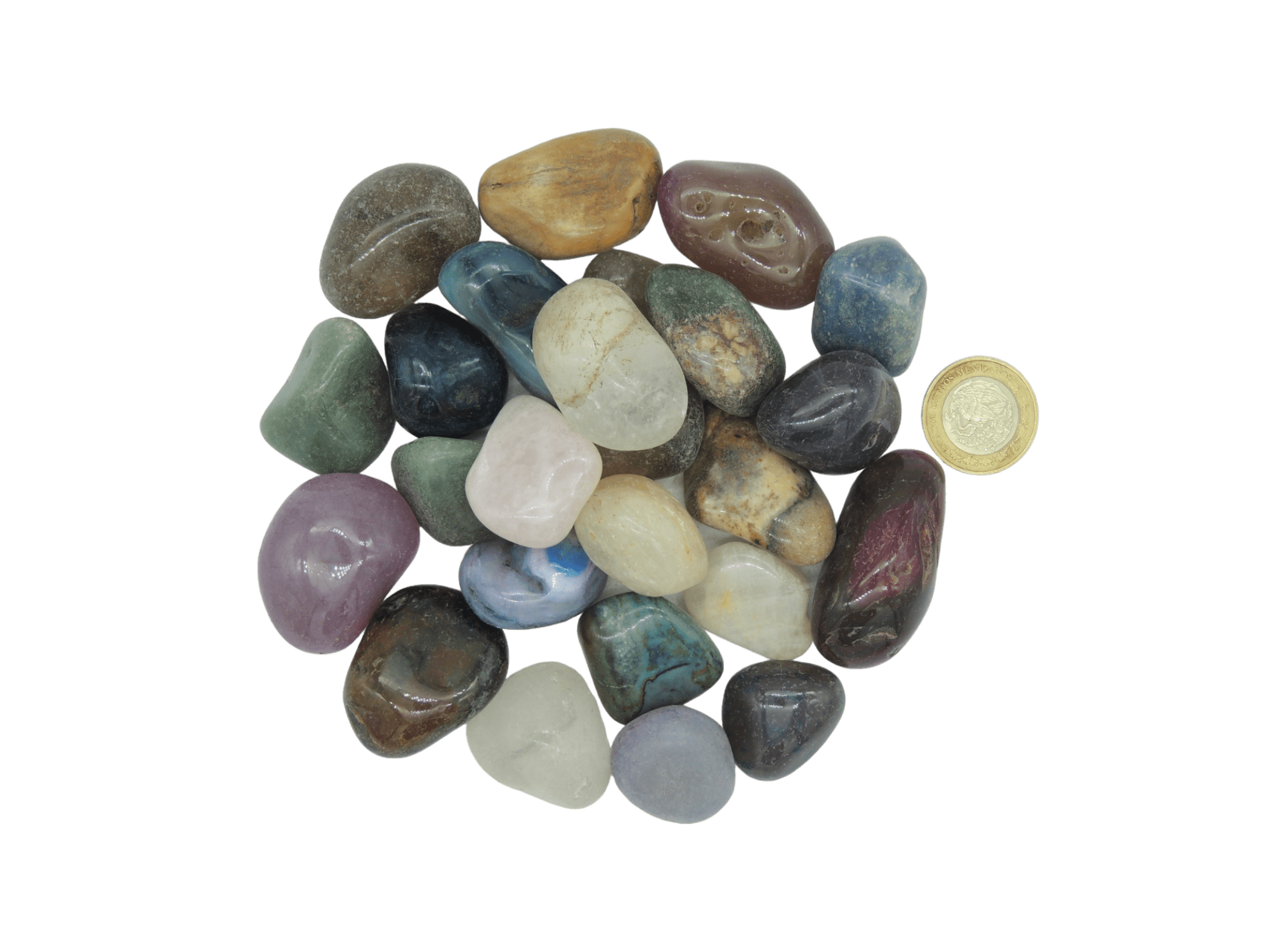 La piedra rolada es amorfa y por ende puede variar el tamaño, Cualquier duda sobre este material favor de mandar whats app o por correo.
