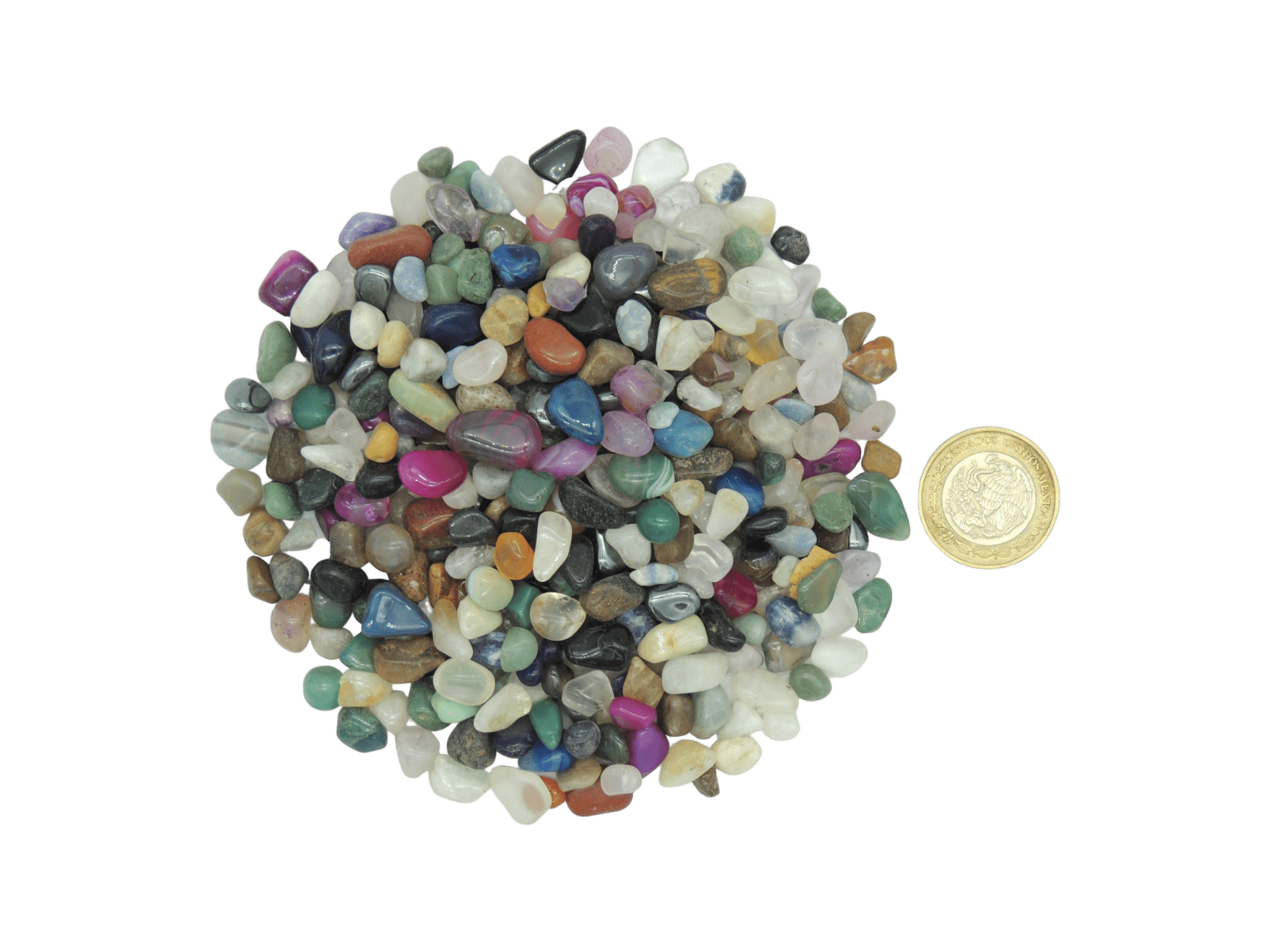 La piedra rolada es amorfa y por ende puede variar el tamaño, Cualquier duda sobre este material favor de mandar whats app o por correo.