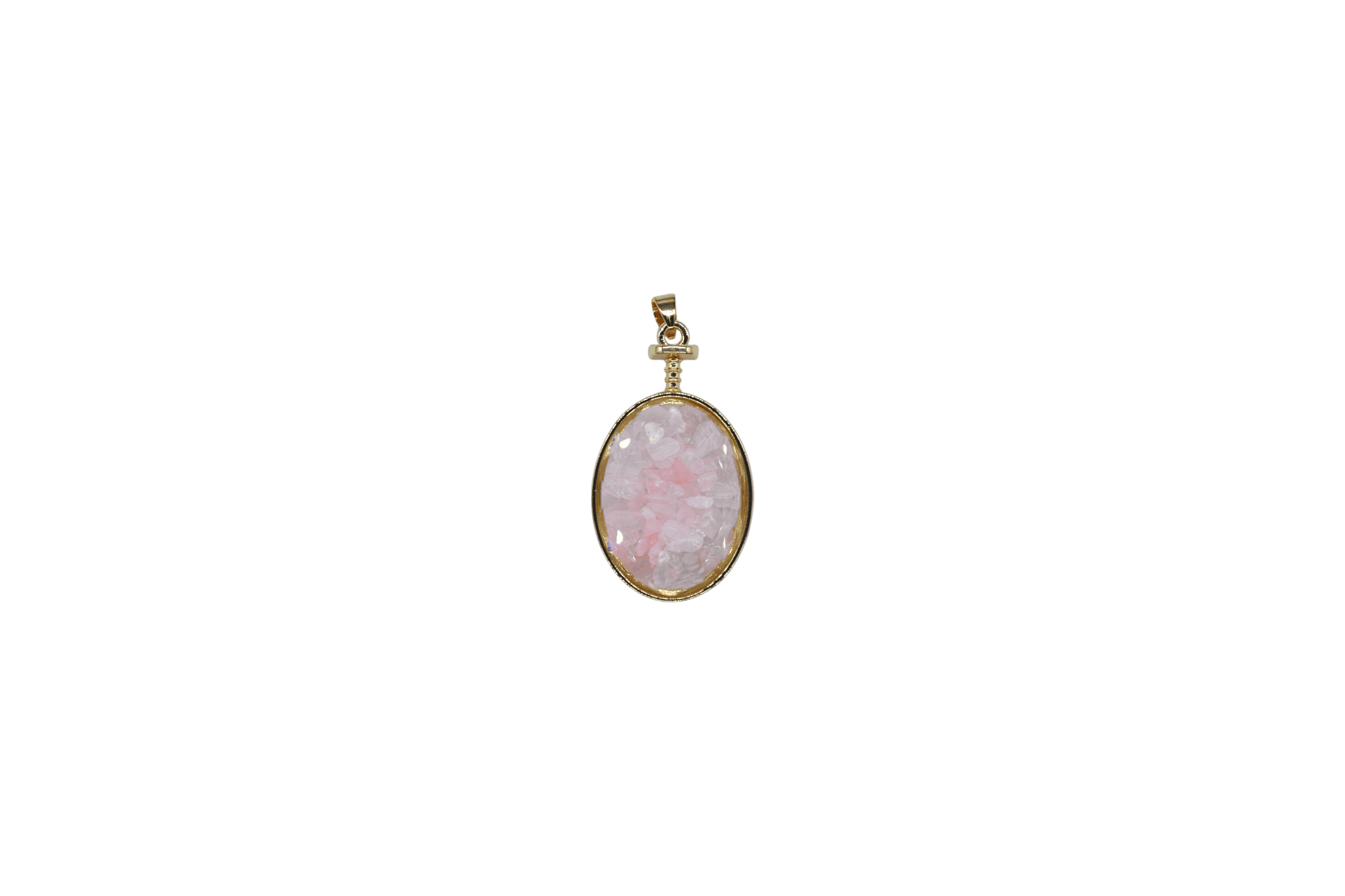 Dije de cuarzo rosa encapsulado en forma oval