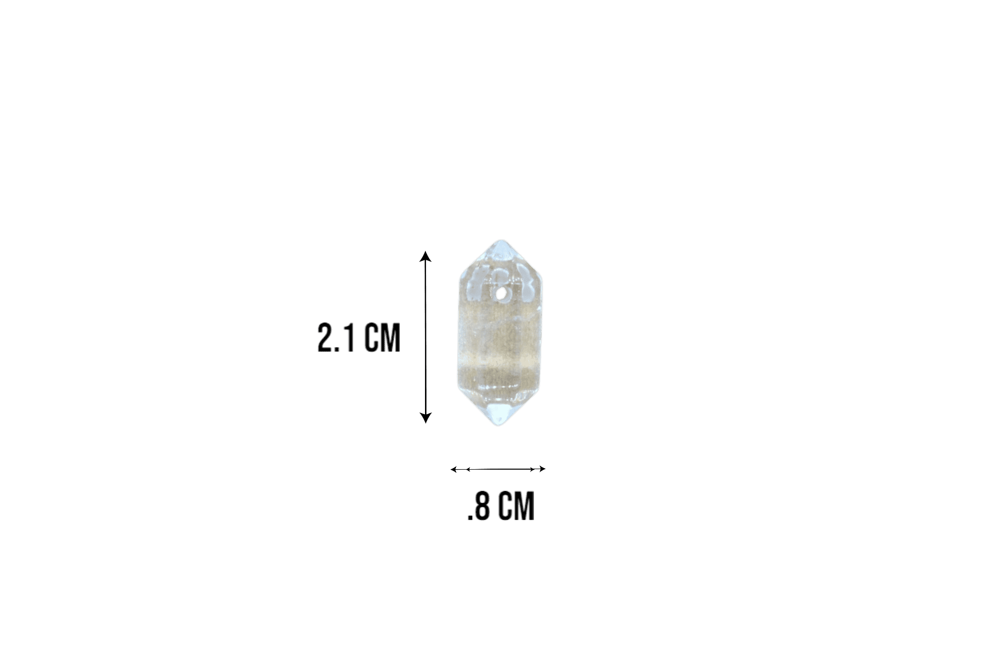 Tamaño: .8 cm de grosor x 2.1 cm de largo.