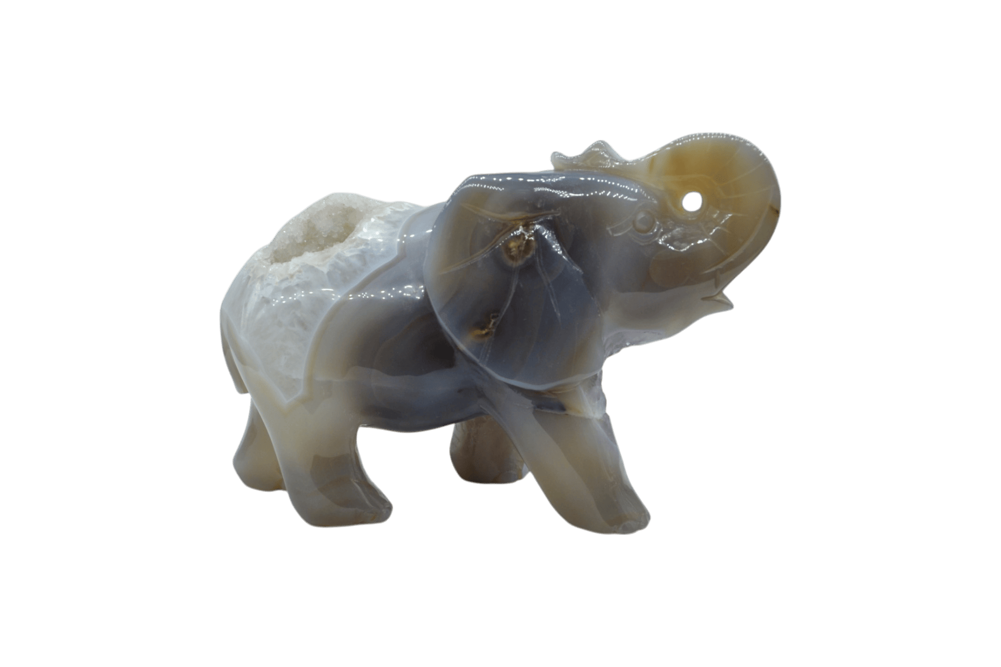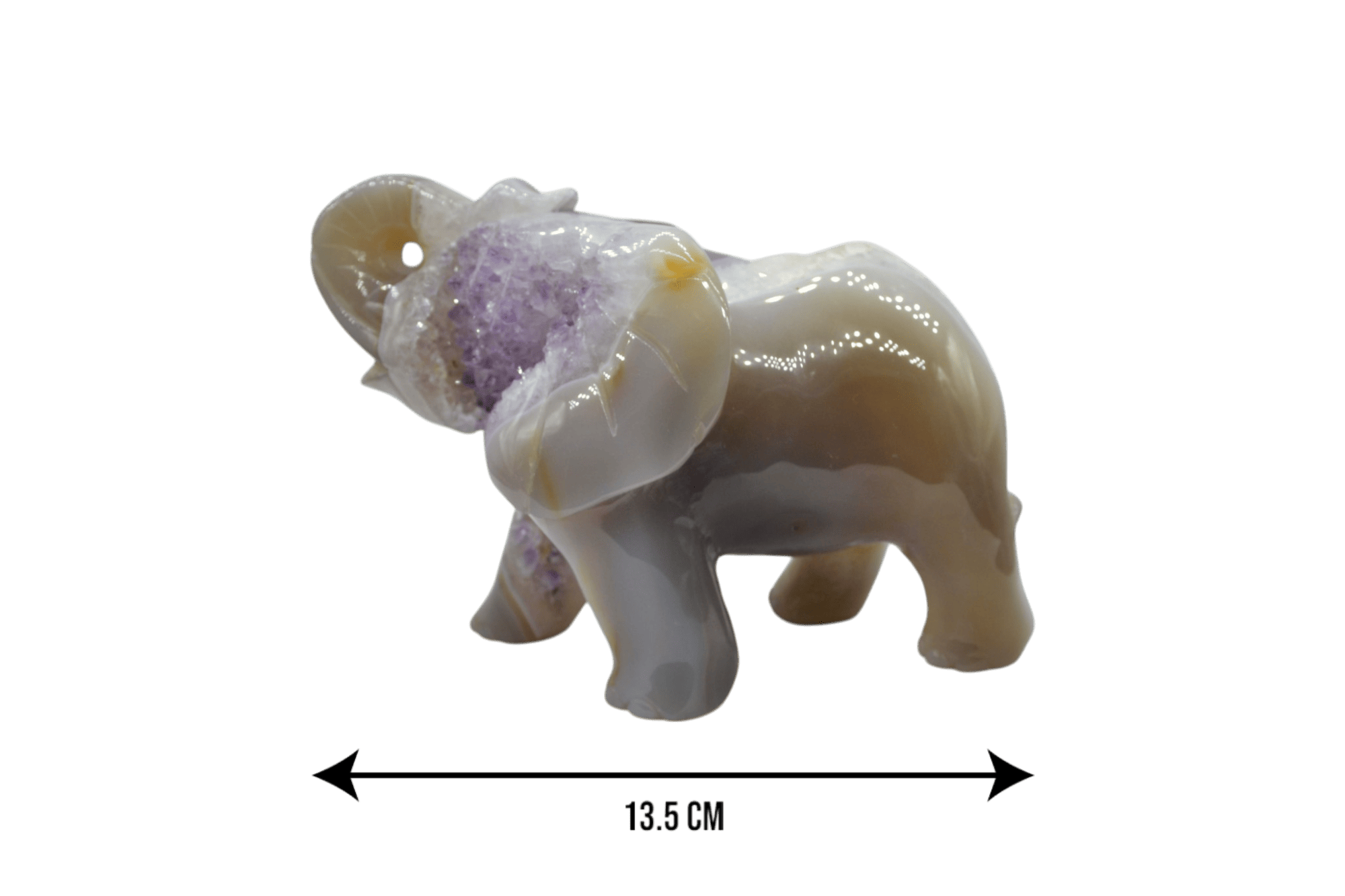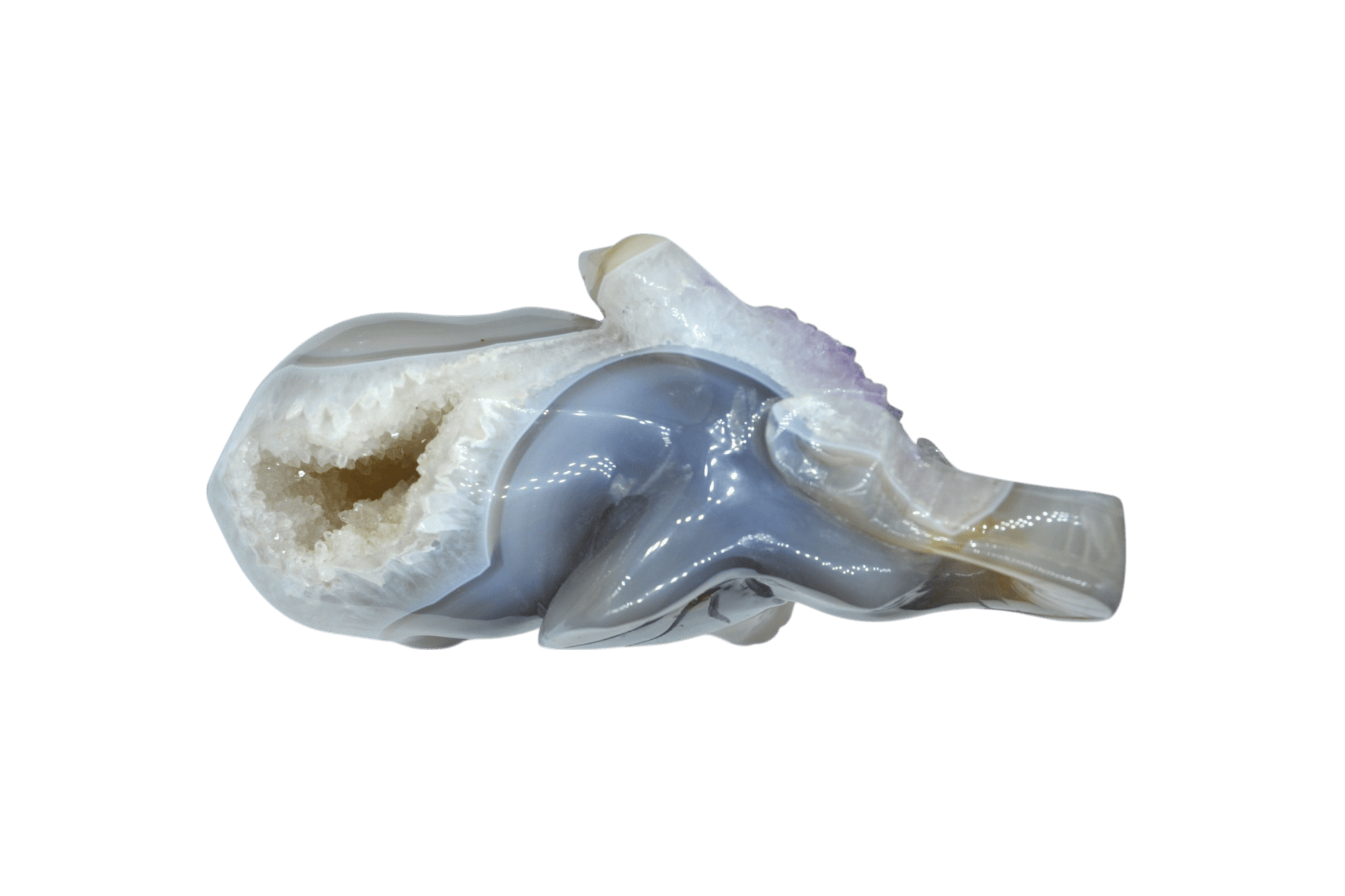 Tipo: Figura de piedra pulida y tallada con drusa natural de amatista.
