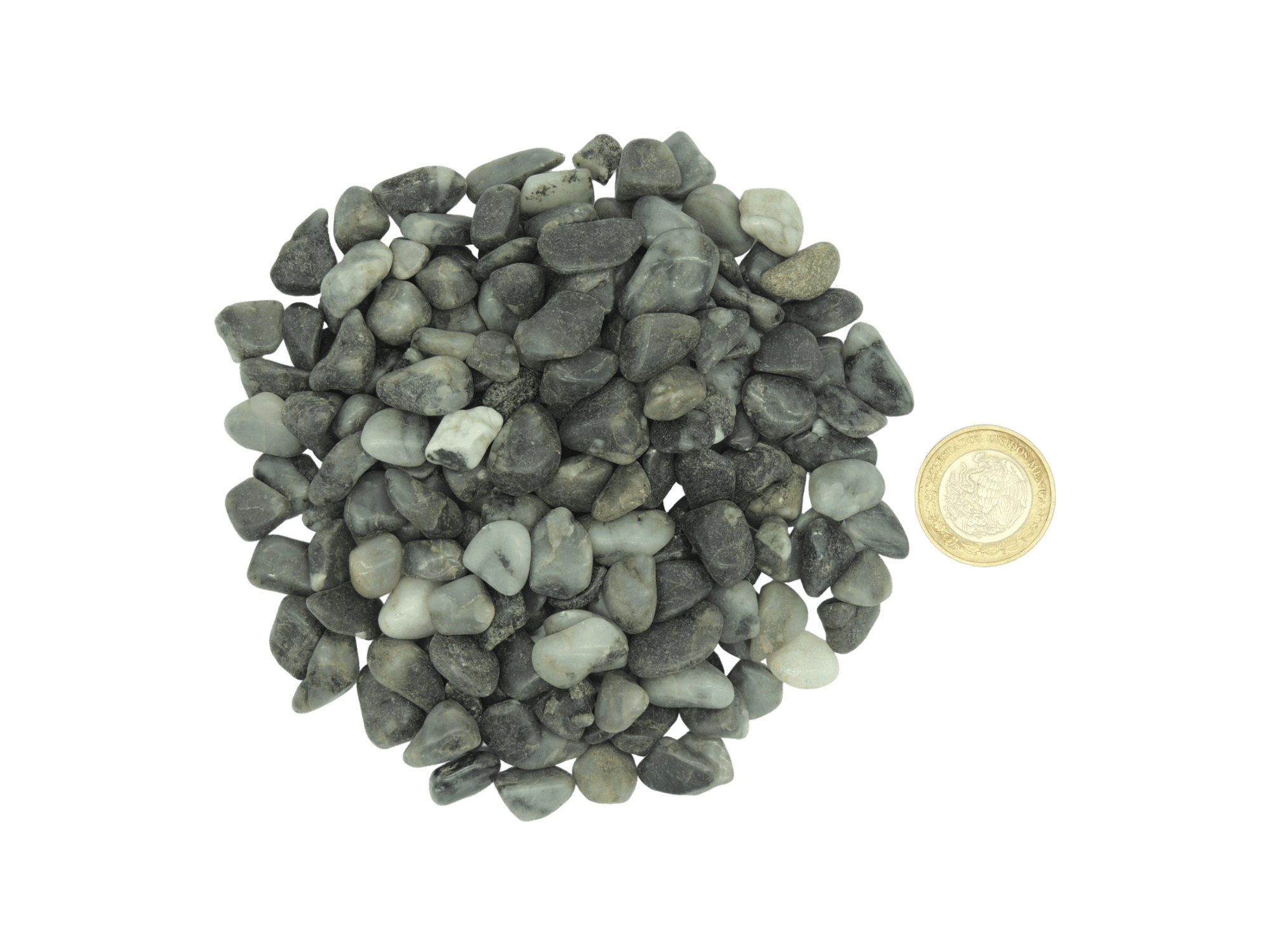 La piedra rolada es amorfa y por ende puede variar el tamaño, Cualquier duda sobre este material favor de mandar whats app o por correo.