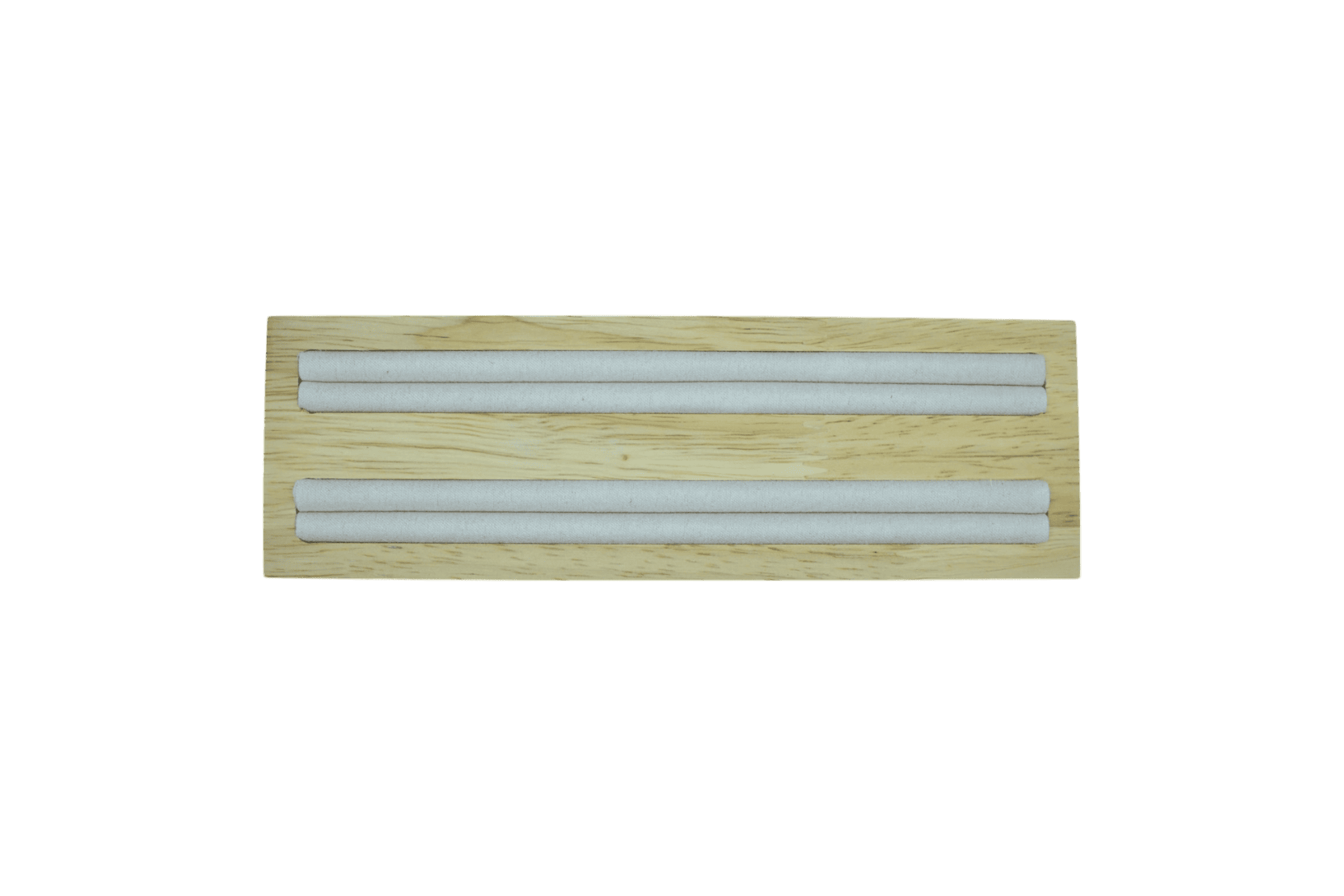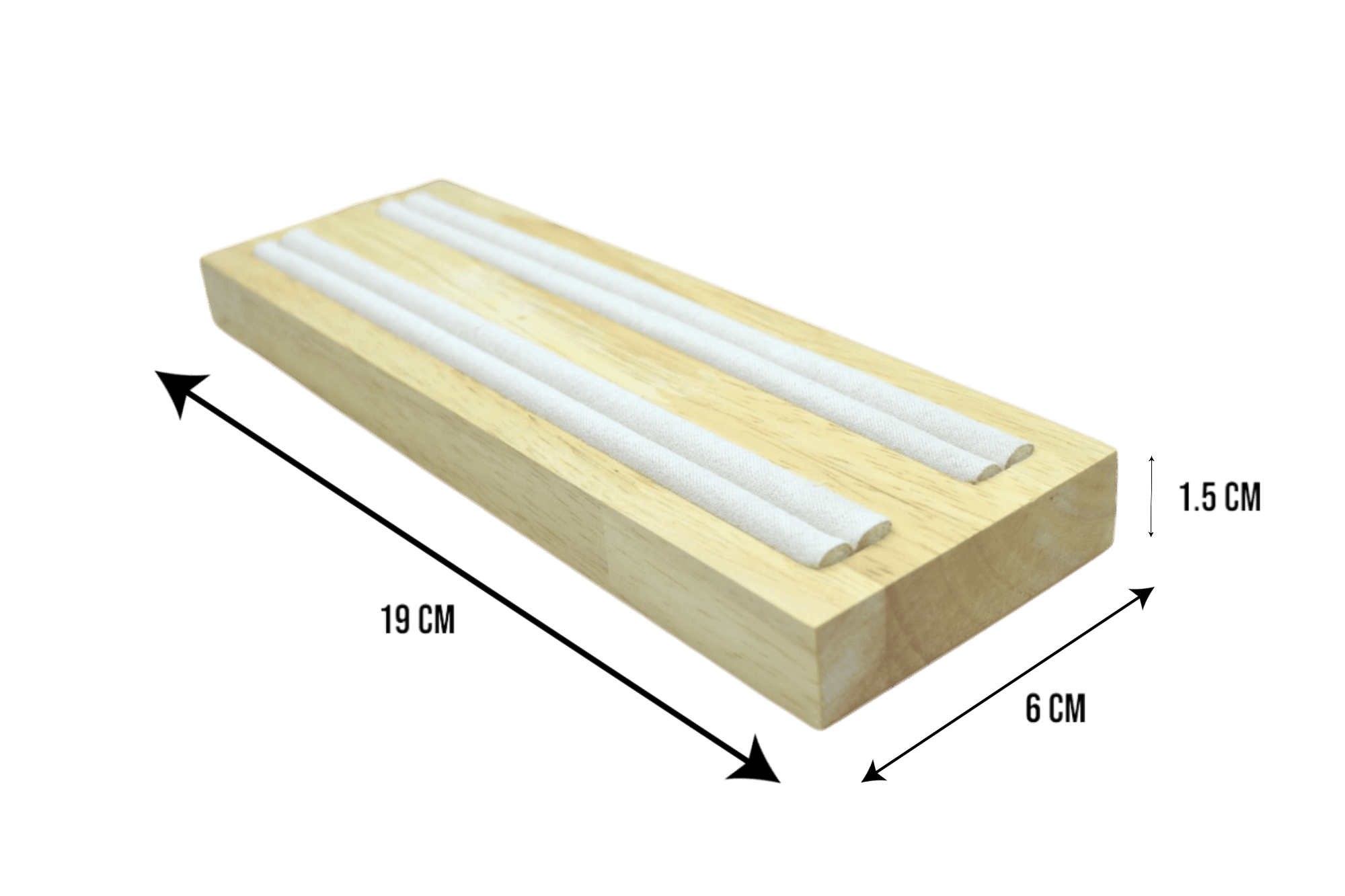 Exhibidor para anillos de madera en color beige, excelente para exhibir tu joyería dándole un toque único y elegante.