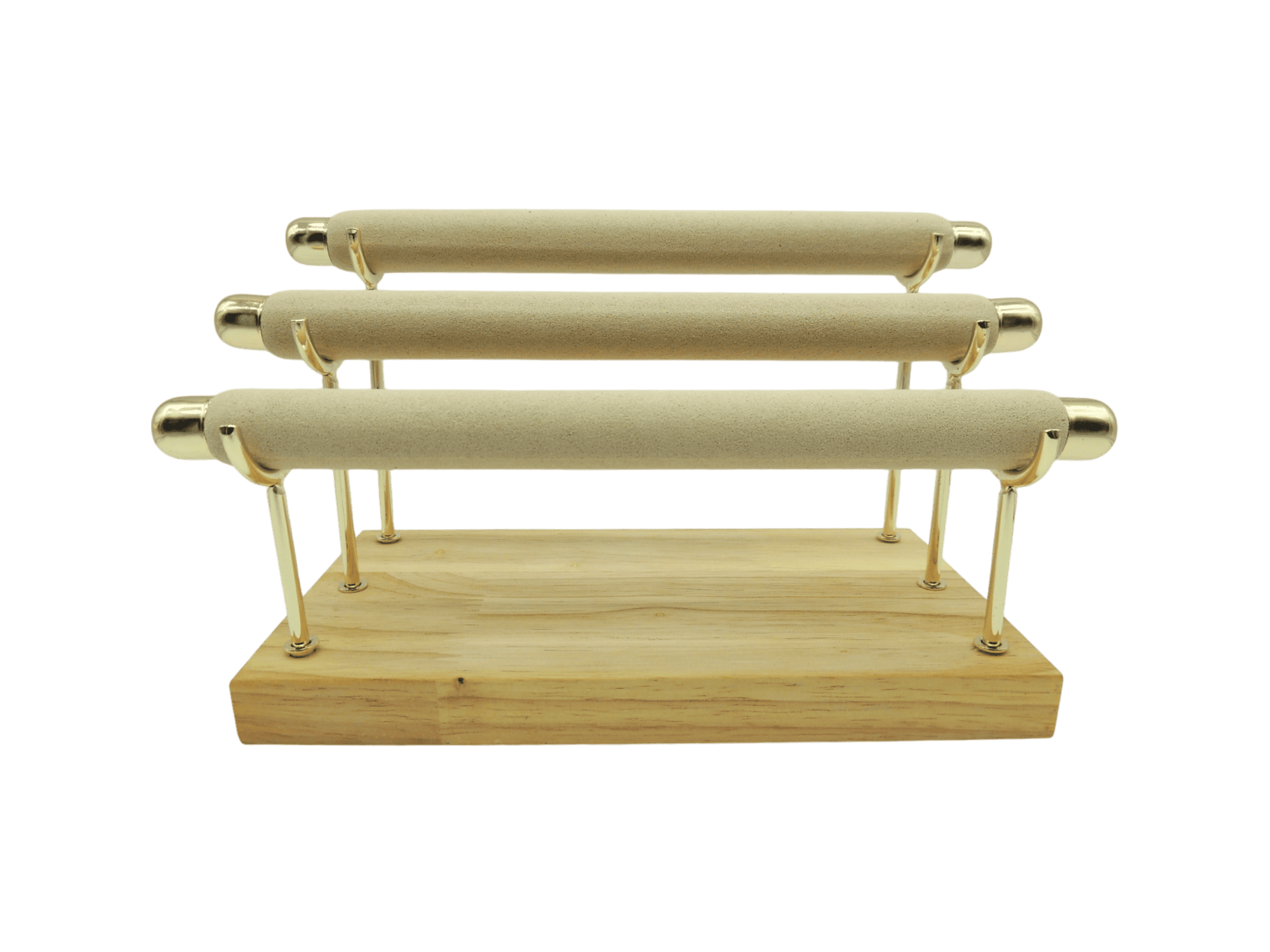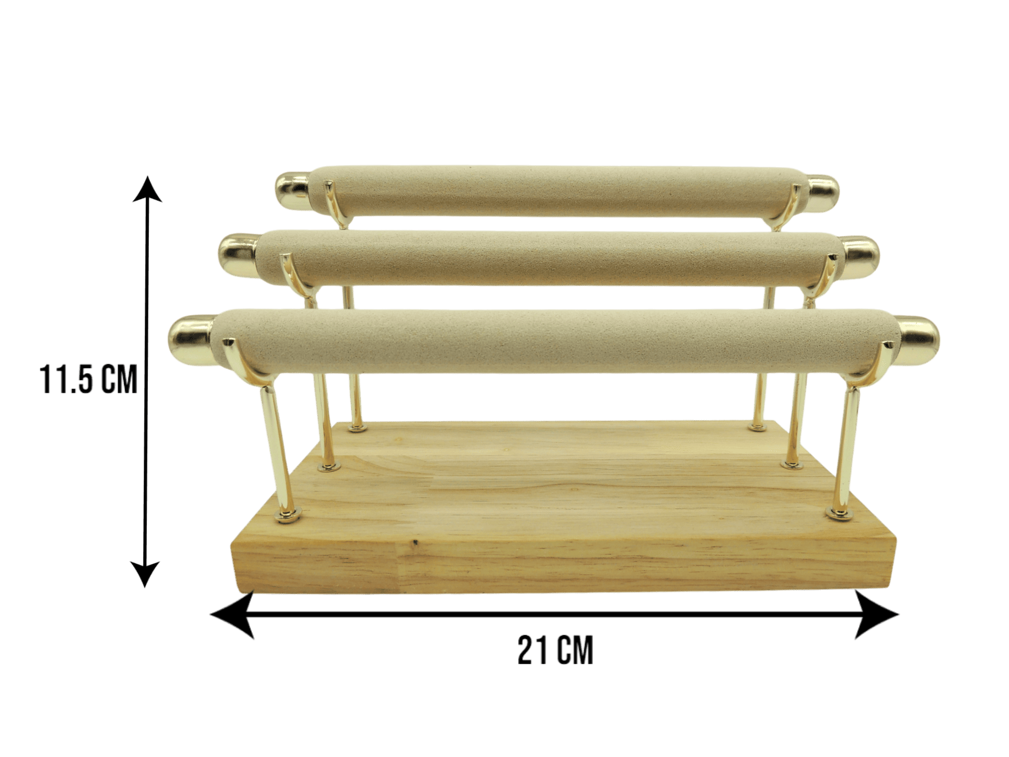 Exhibidor para pulseras de 3 niveles de madera, excelente para exhibir tus mejores creaciones.