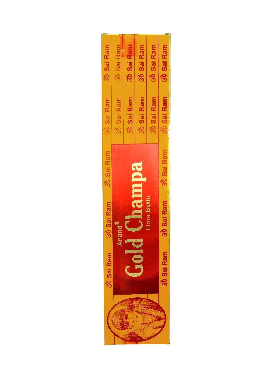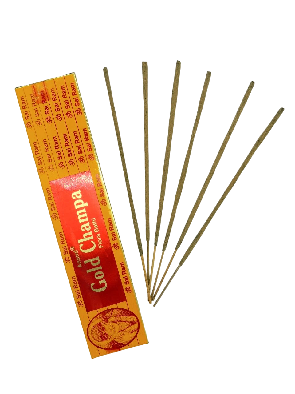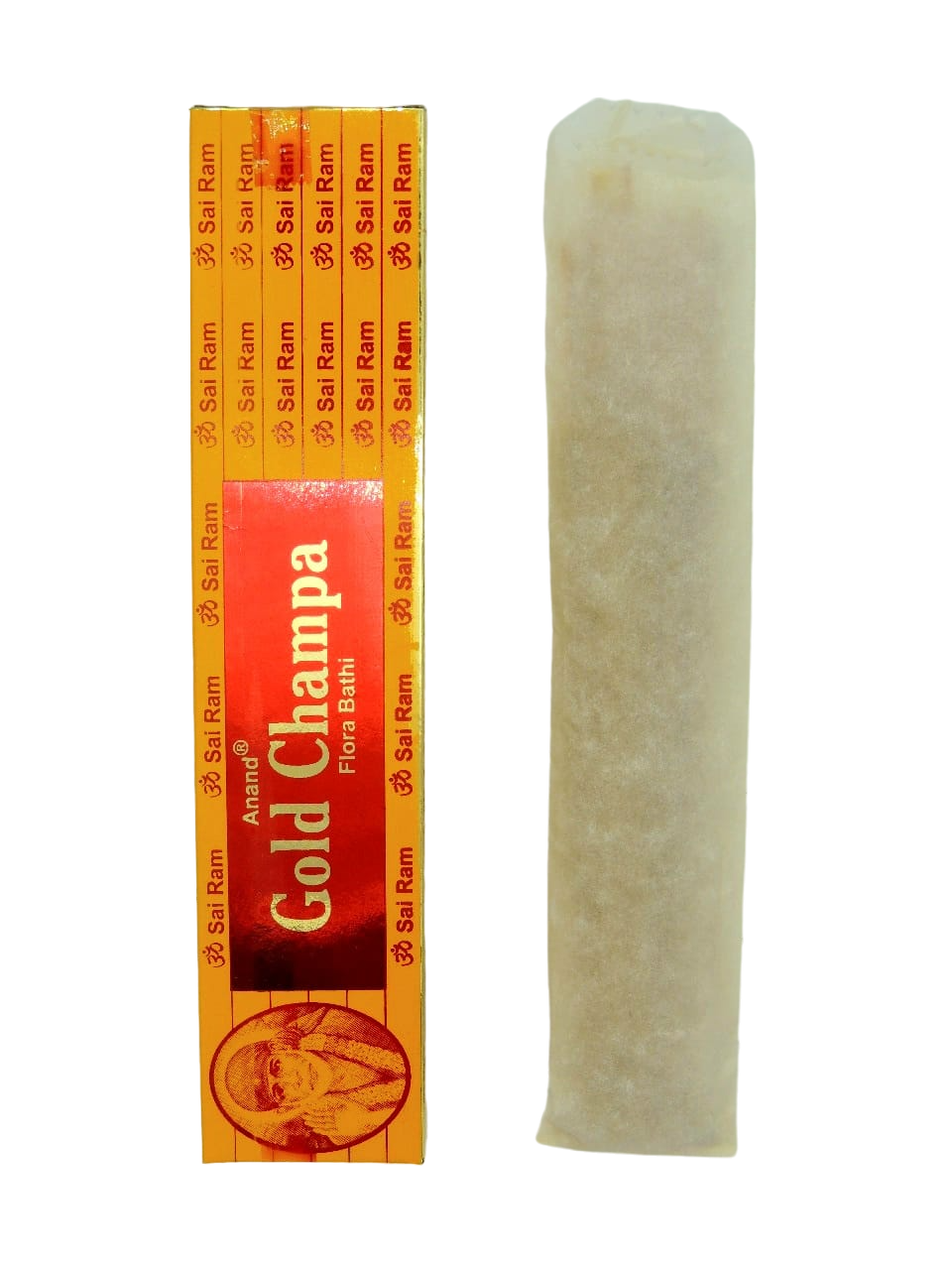 Varitas de Incienso Deluxe Gold Champa odorantes de ambiente. Varitas de bambú, polvo de sándalo, carbón, aglutinante y esencia.