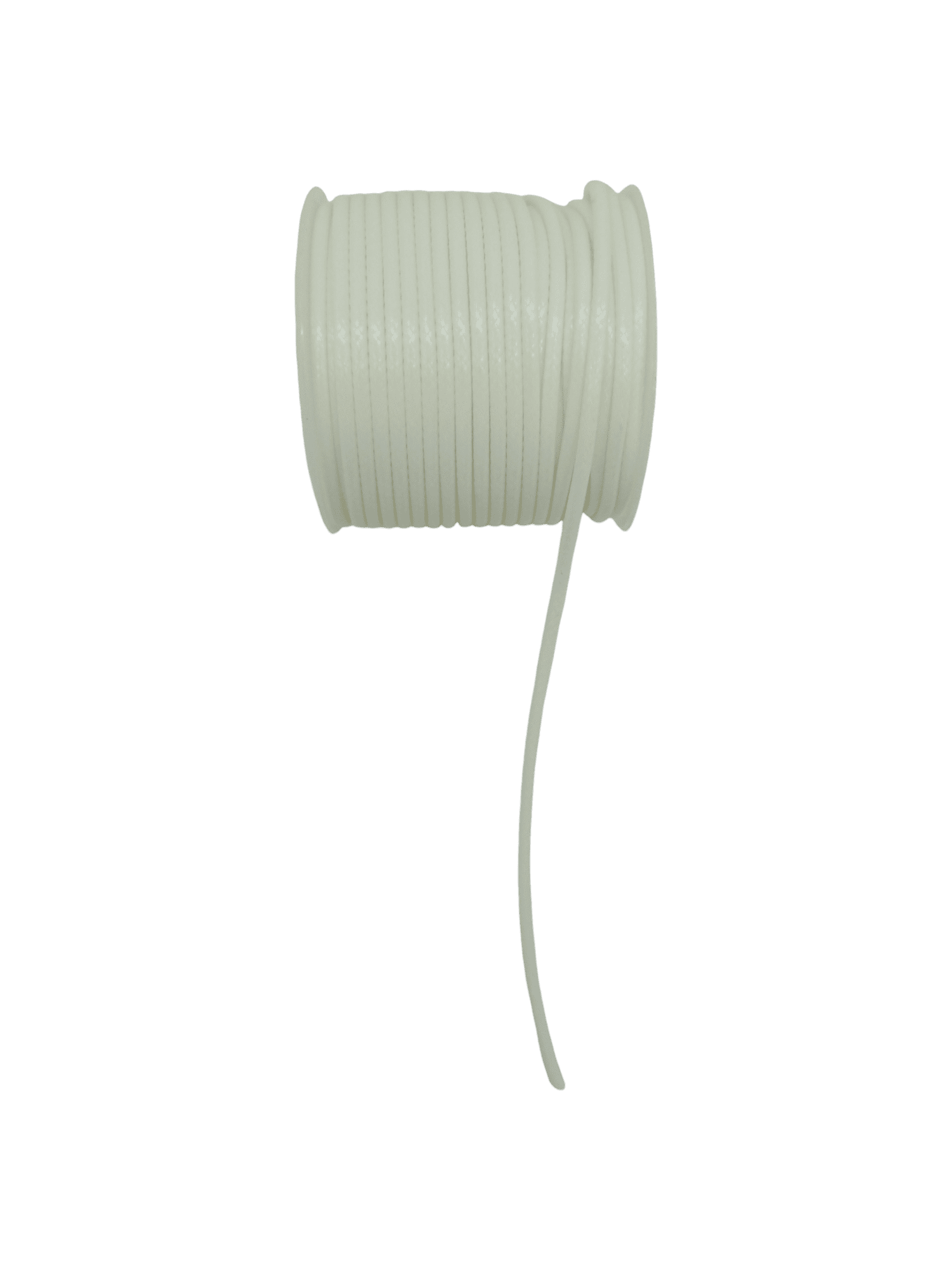 Hilo encerado para elaboración de bisutería o manualidades y mas. Articulo: Hilo encerado. Color: Blanco. Contenido: 10 mts. Grosor: 2 mm.