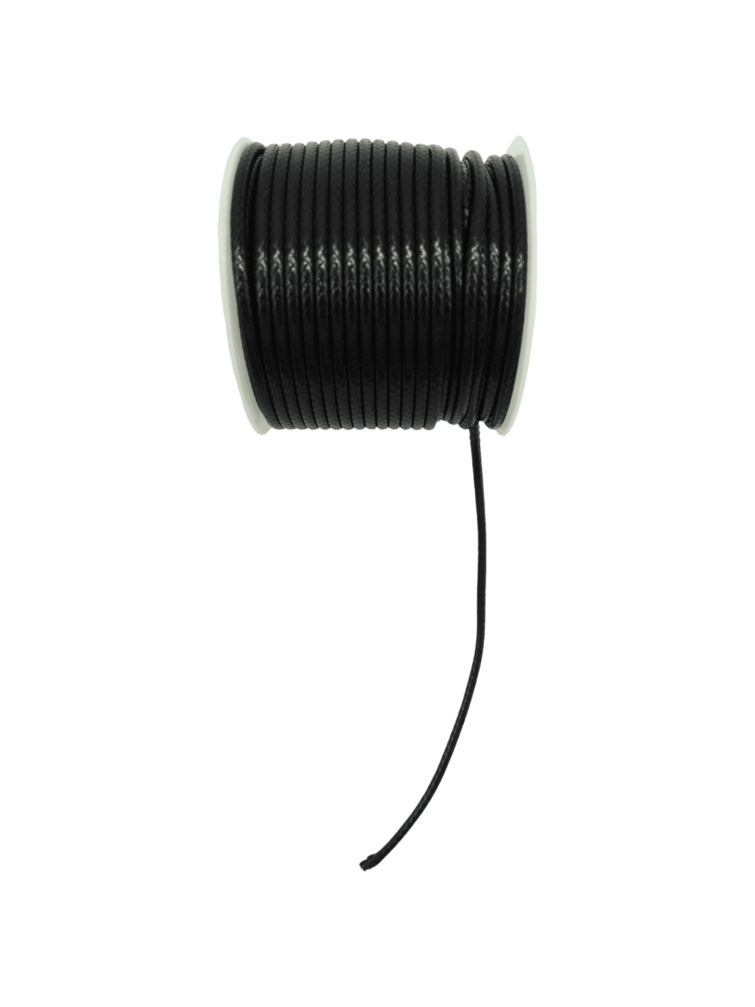 Hilo encerado para elaboración de bisutería o manualidades y mas. Articulo: Hilo encerado. Color: Negro. Contenido: 10 mts. Grosor: 2 mm.