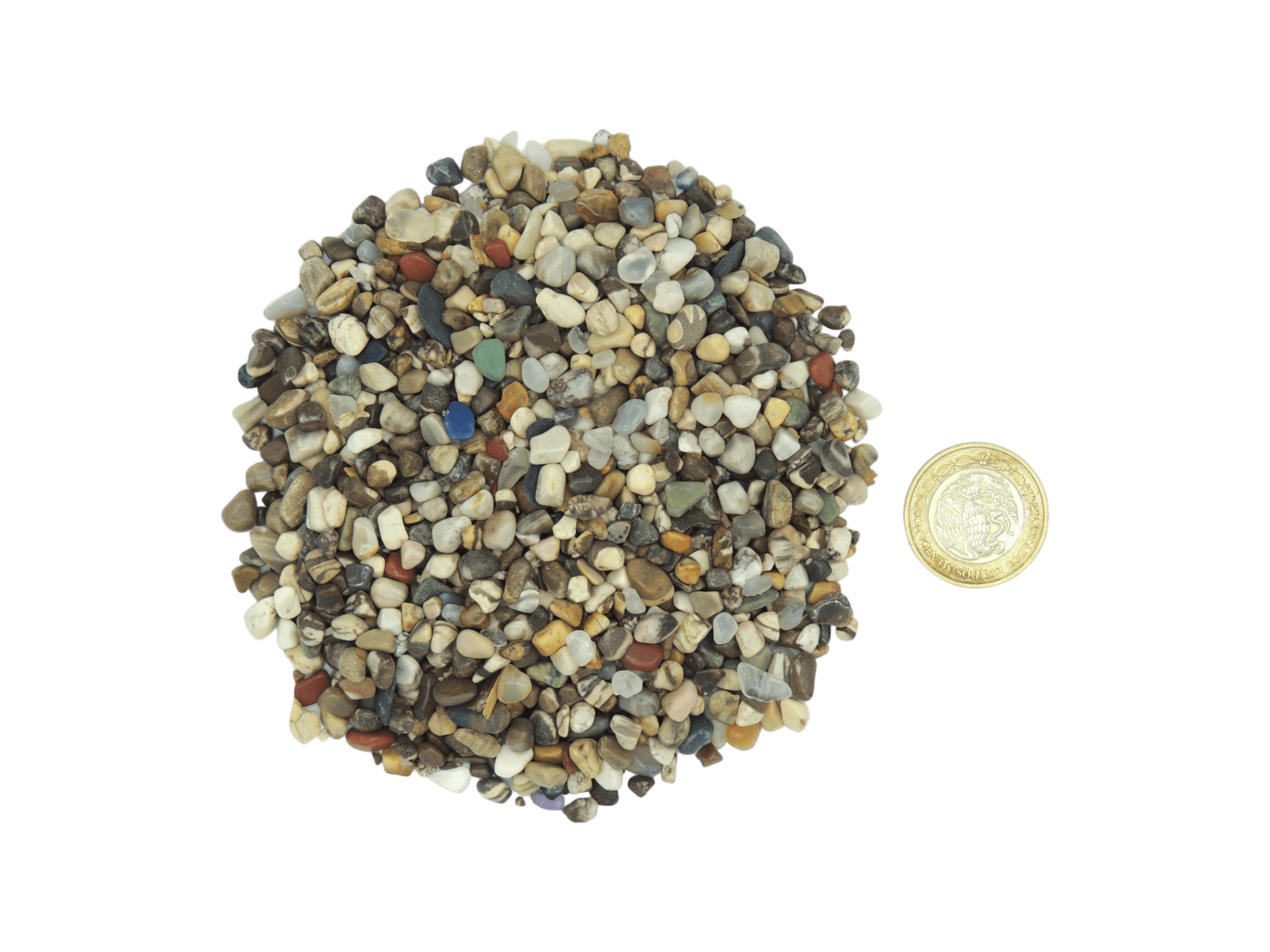 La piedra rolada es amorfa y por ende puede variar el tamaño, Cualquier duda sobre este material favor de mandar whats app o por correo.
