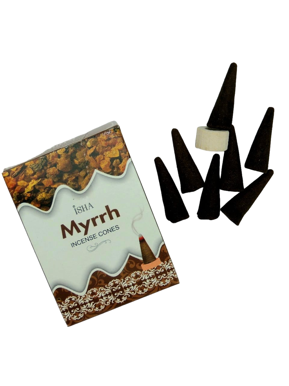 Incienso natural de aroma Mirra, Caja que contiene 14 conos, elaborado en la India.