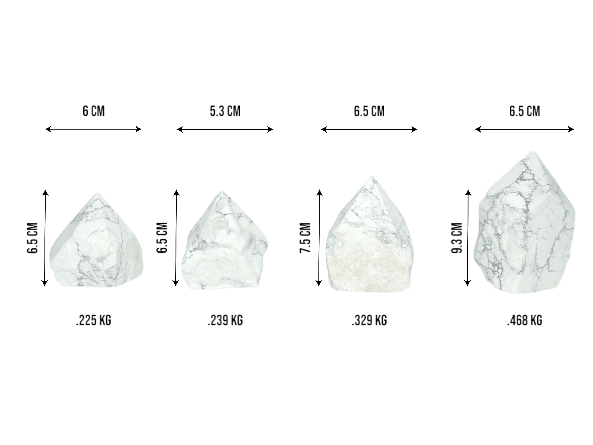 Propiedades Espirituales: La howlita aporta relajación, ayuda a calmar la mente, a conciliar el sueño y favorece la meditación. Fomenta la paciencia y la buena comunicación. Fortalece los rasgos positivos del carácter. Se dice que la howlita prepara la mente para recibir sabiduría y comprensiones de vidas pasadas.