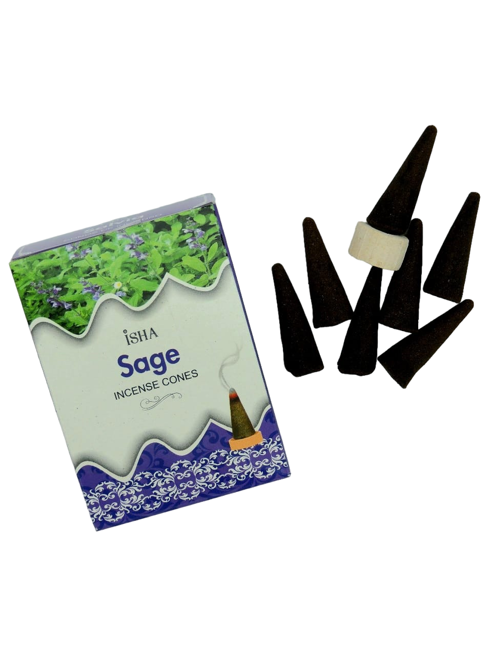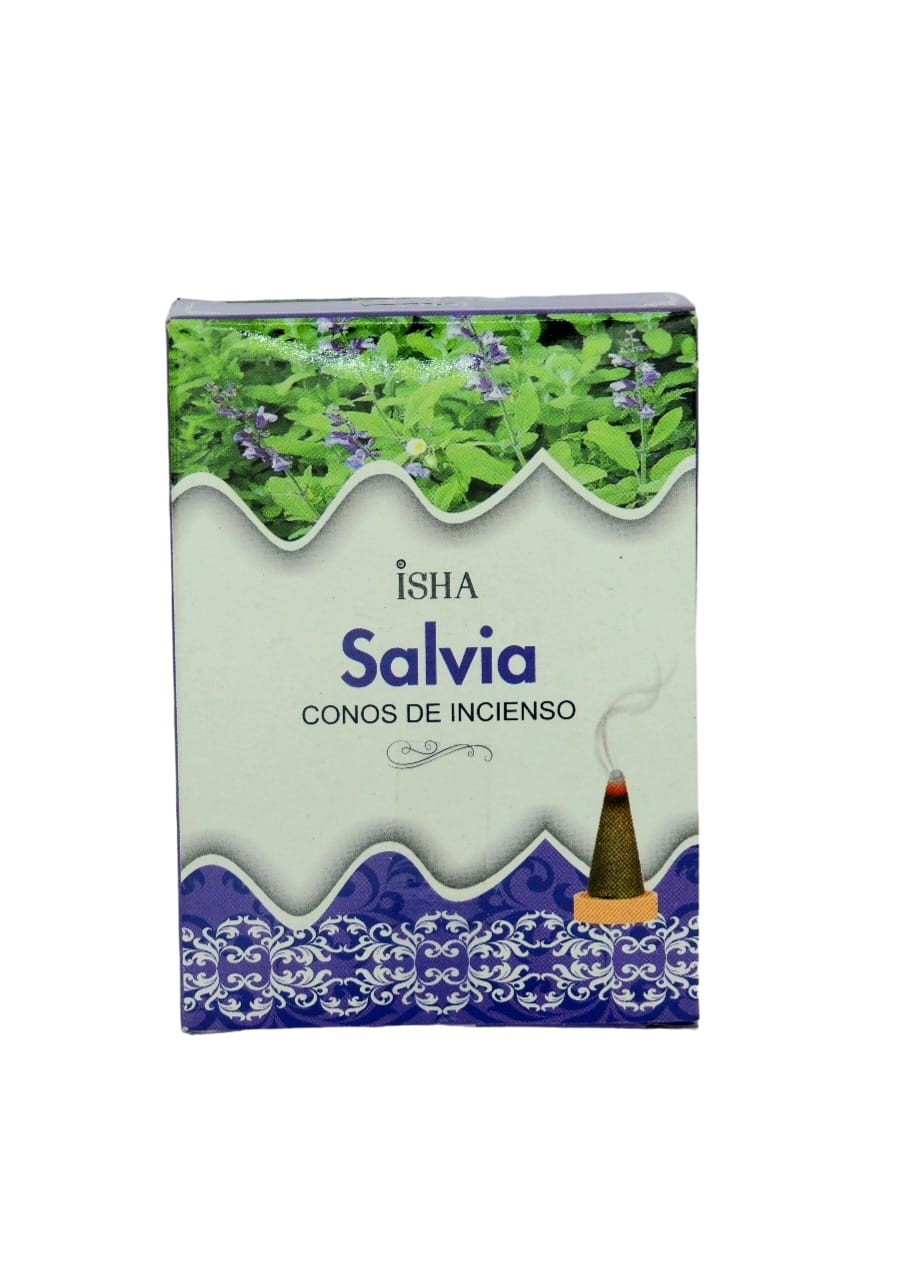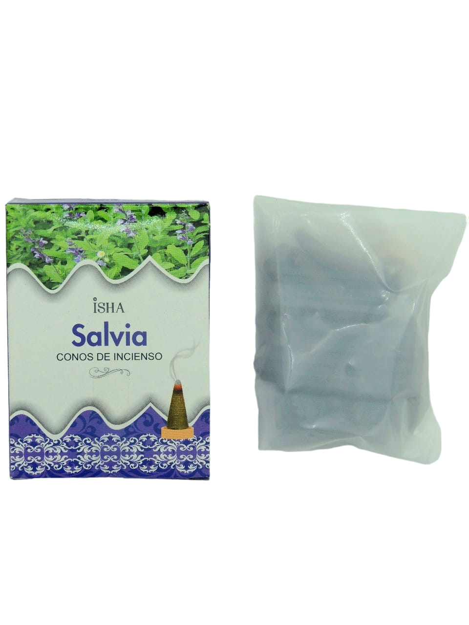 Incienso natural de aroma Salvia, Caja que contiene 14 conos, elaborado en la India.