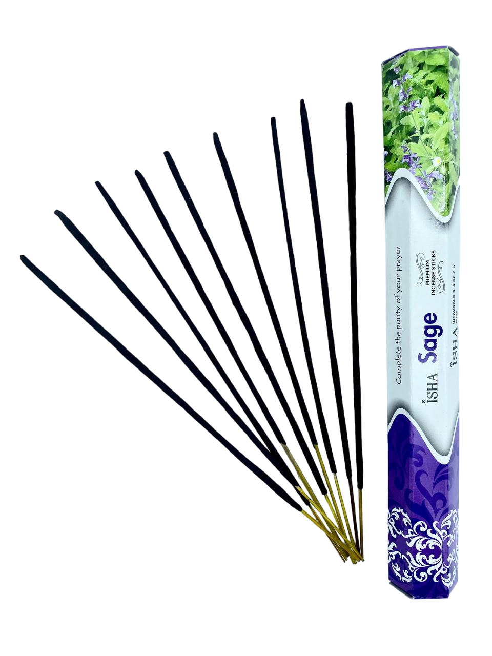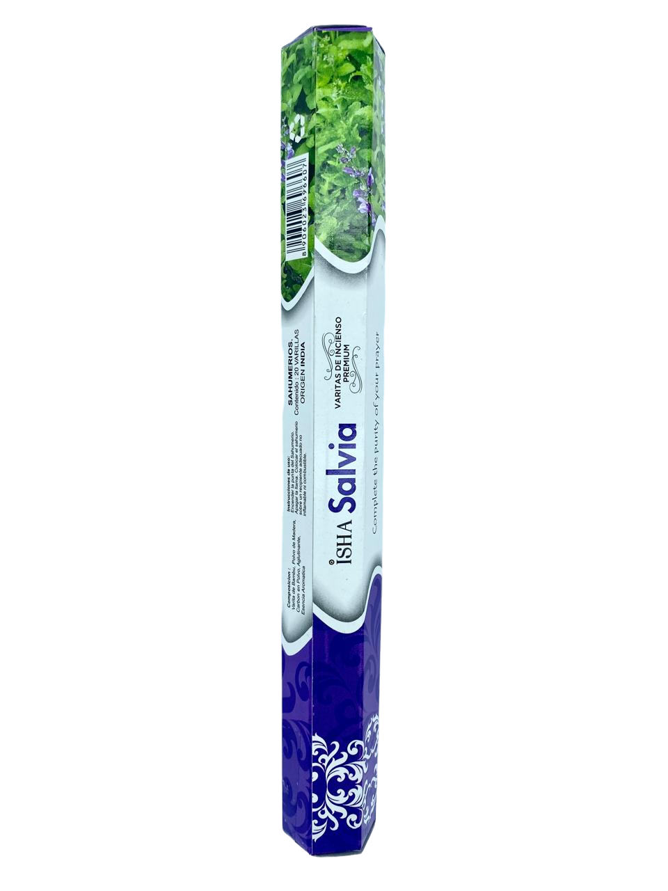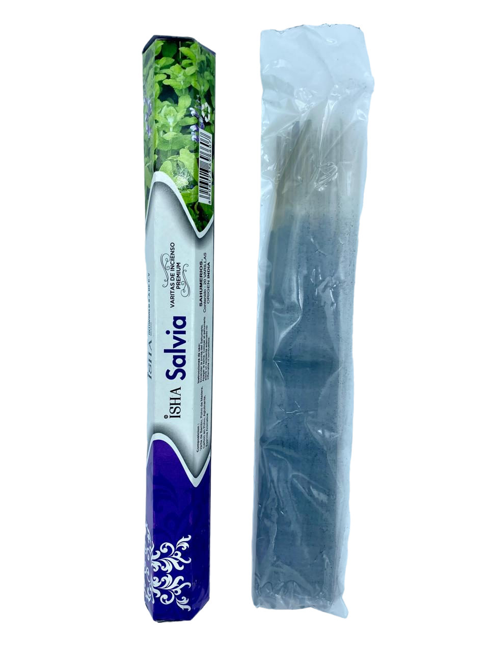 Incienso natural de aroma Salvia, sobre que contiene 20 varitas, elaborado en la India.