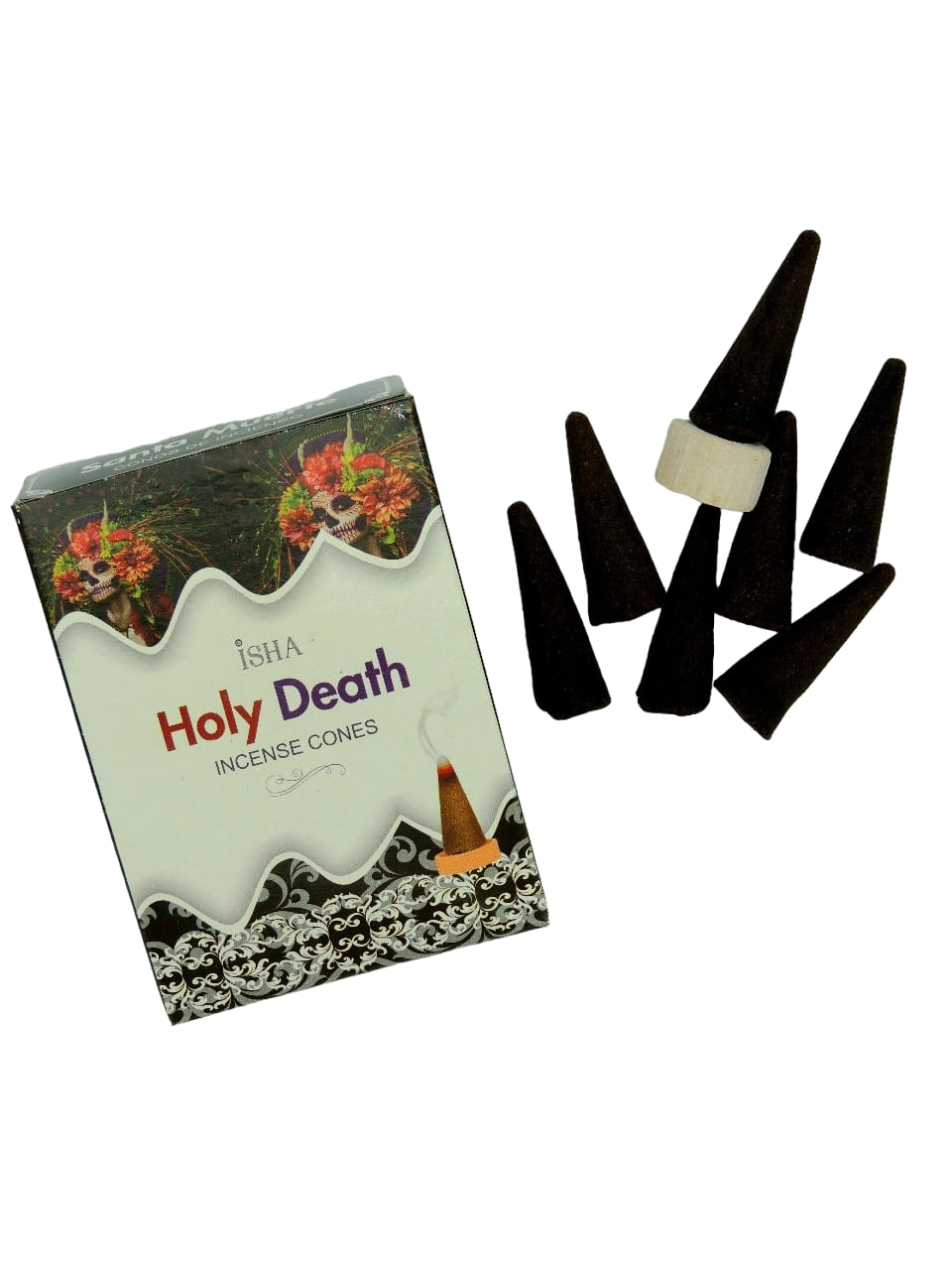 Incienso natural de aroma Santa Muerte, Caja que contiene 14 conos, elaborado en la India.