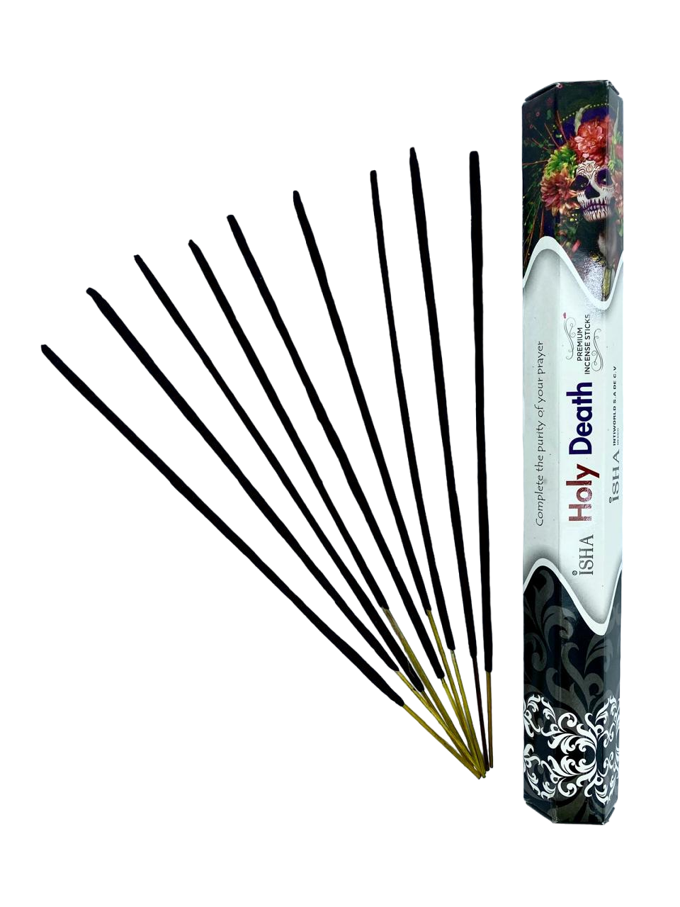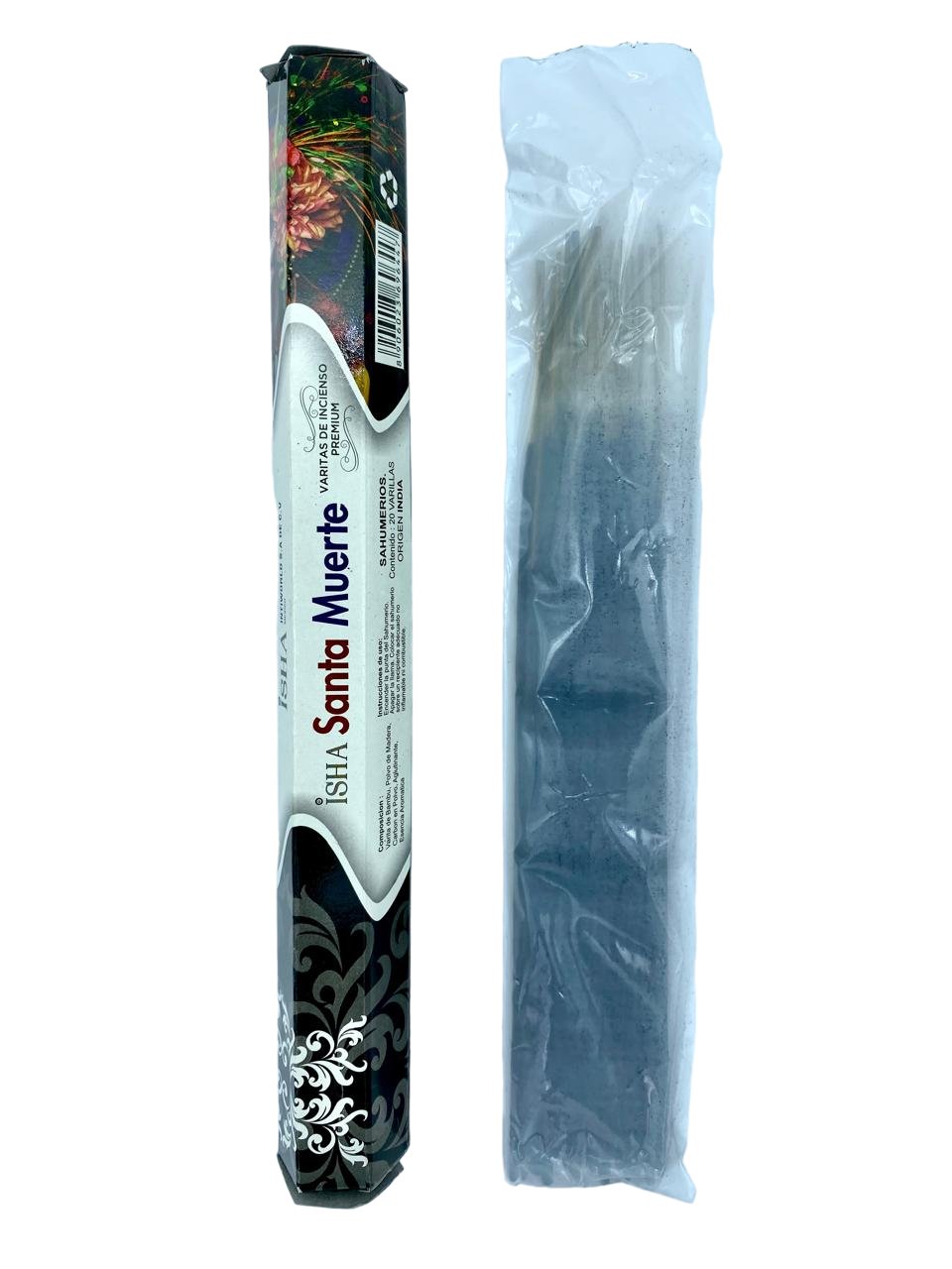 Incienso natural de aroma Santa Muerte, sobre que contiene 20 varitas, elaborado en la India.