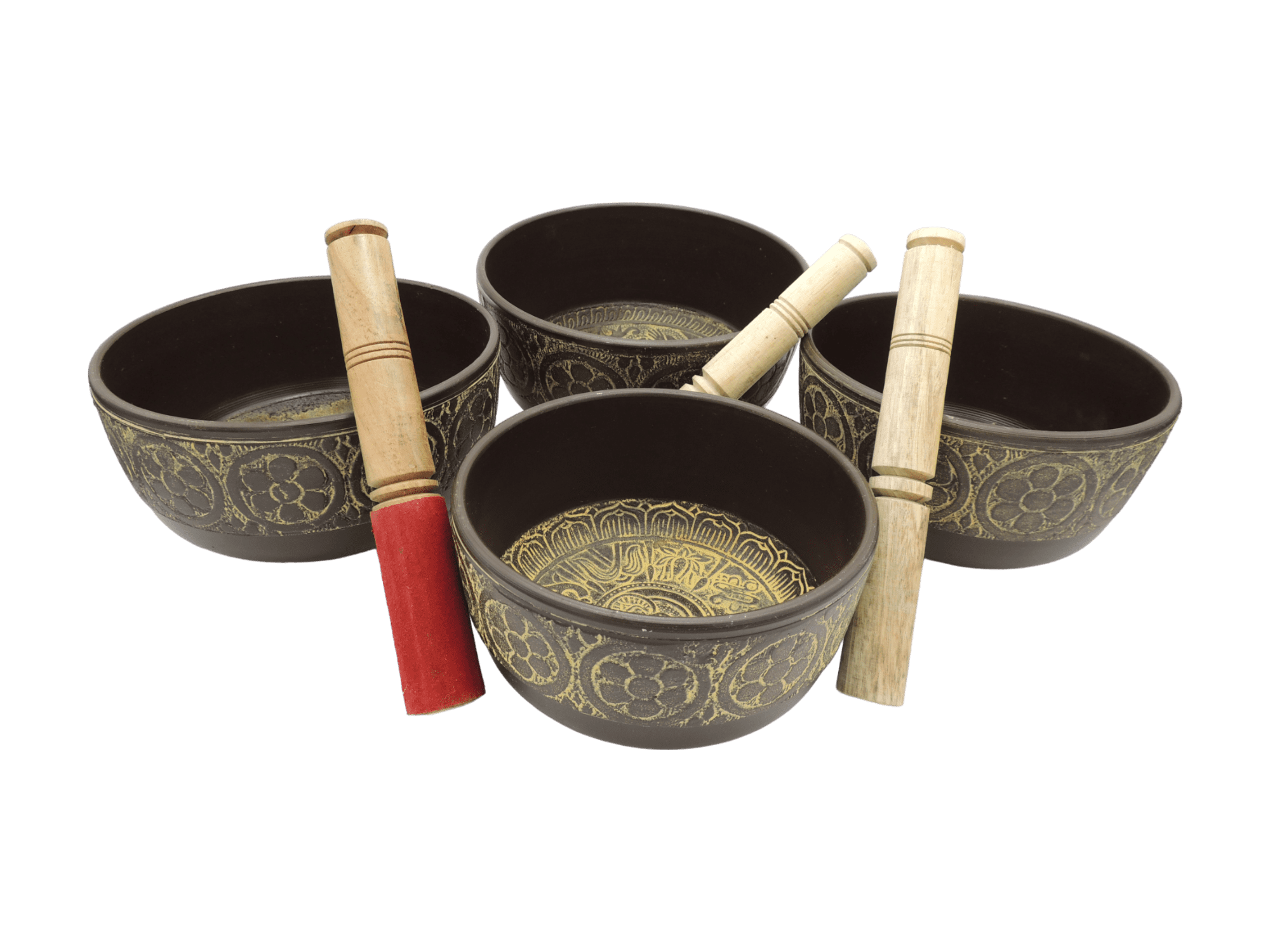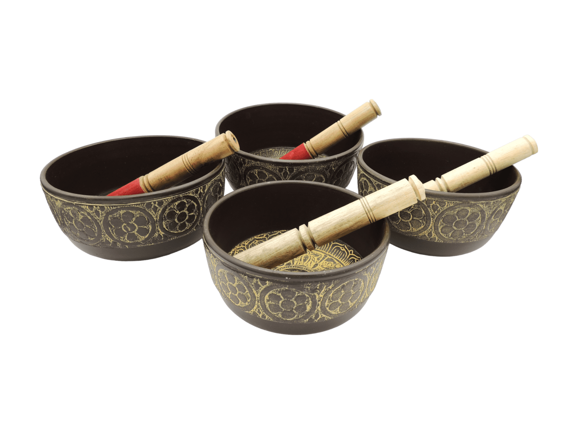 Tazón tibetano marrón con amarillo set de 4 pz