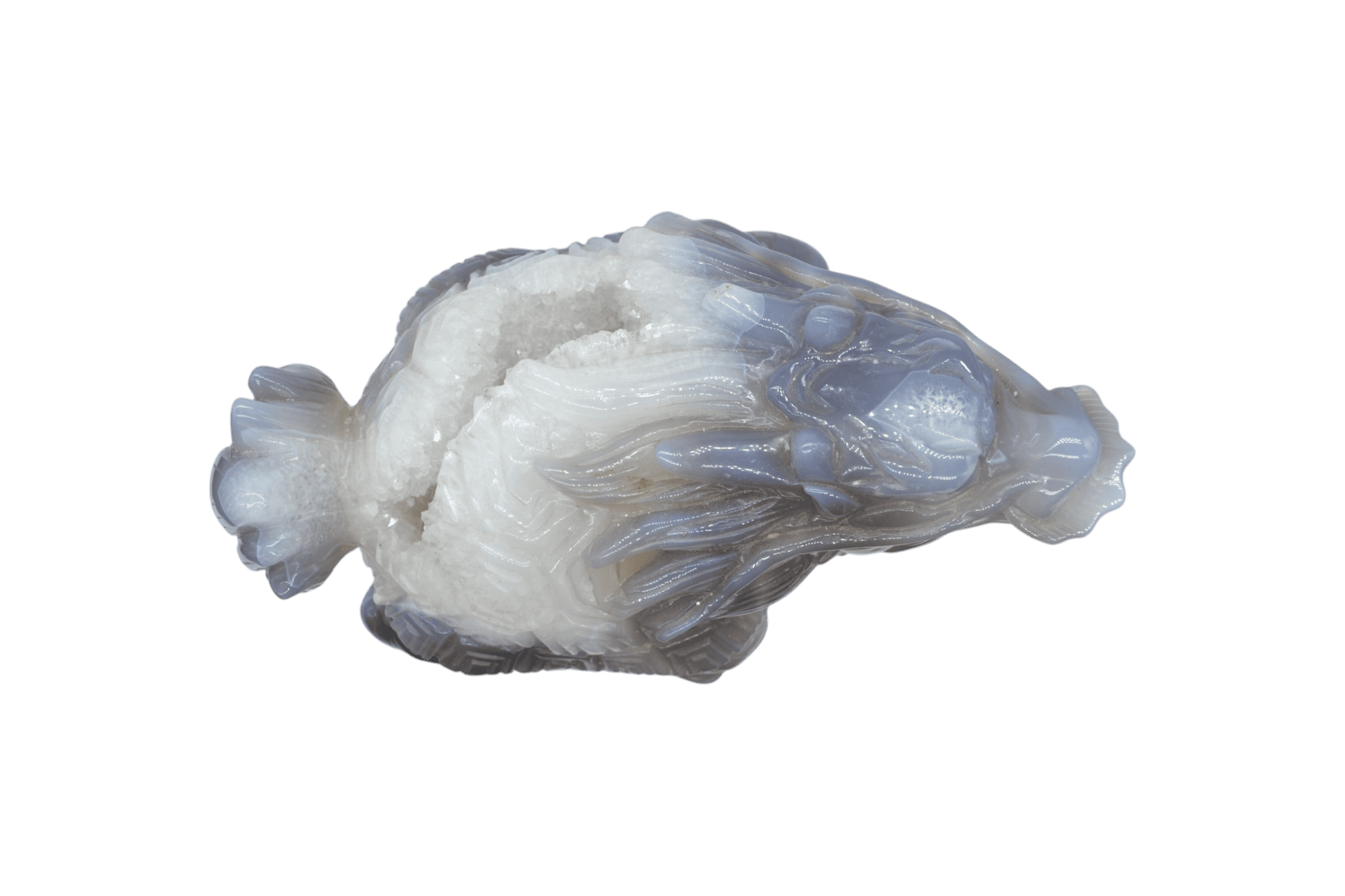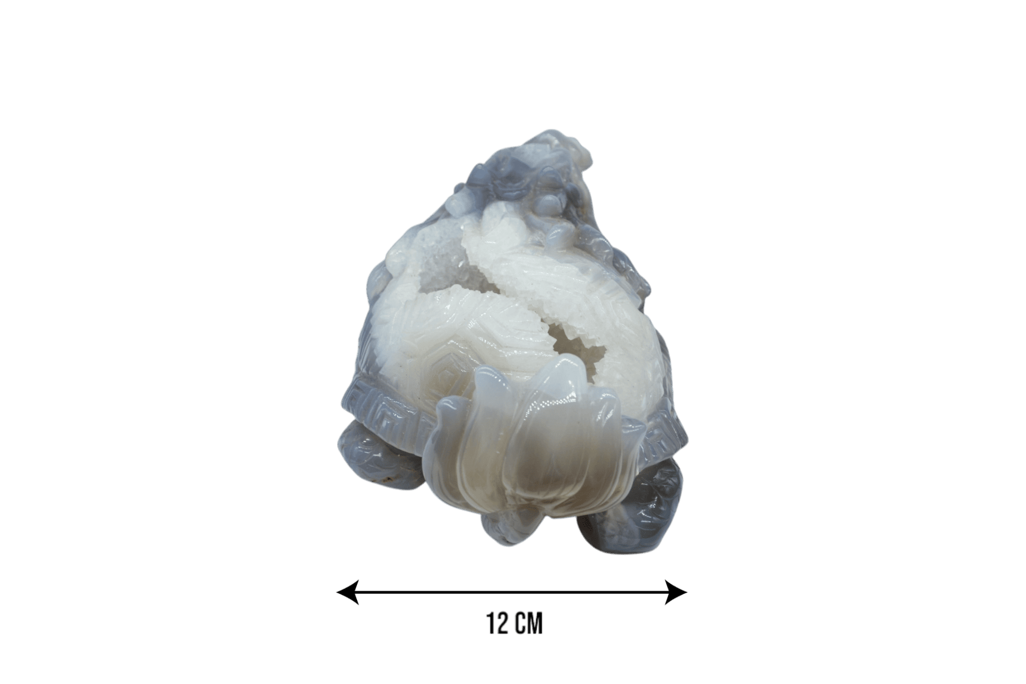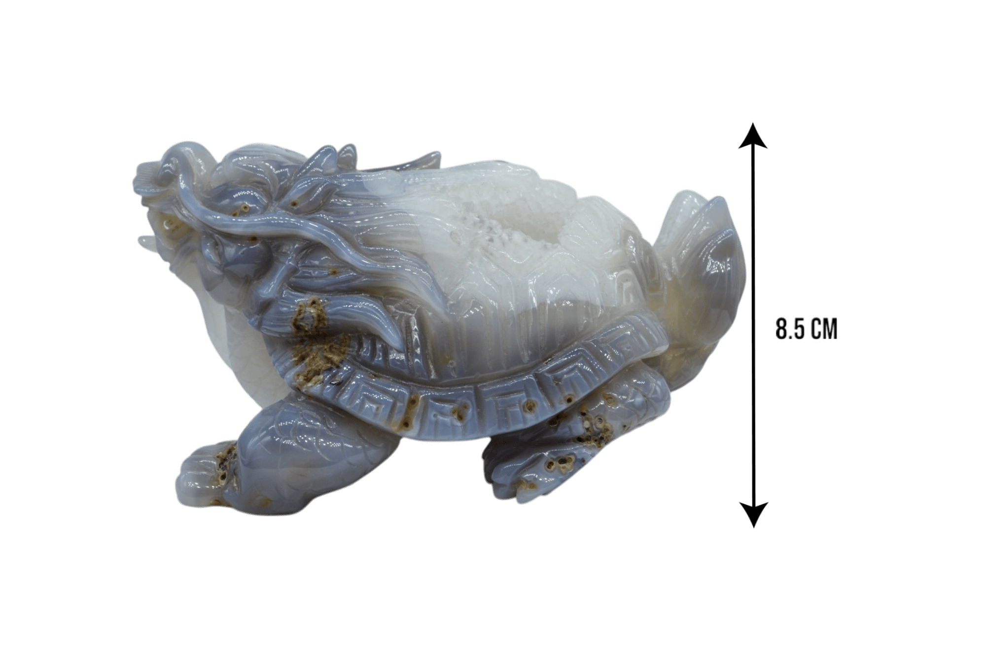 Tipo: Figura de piedra pulida y tallada con drusa natural de amatista.