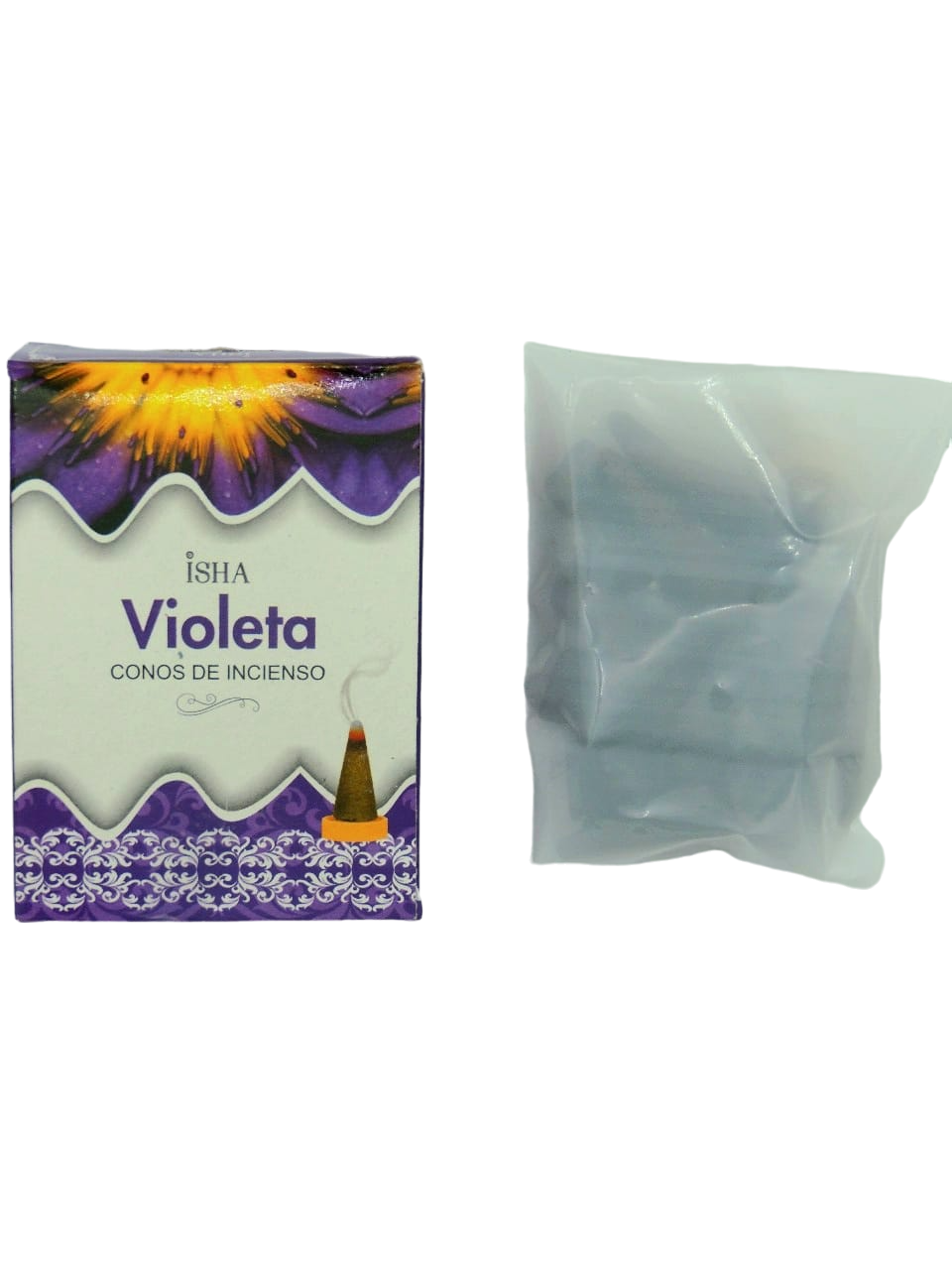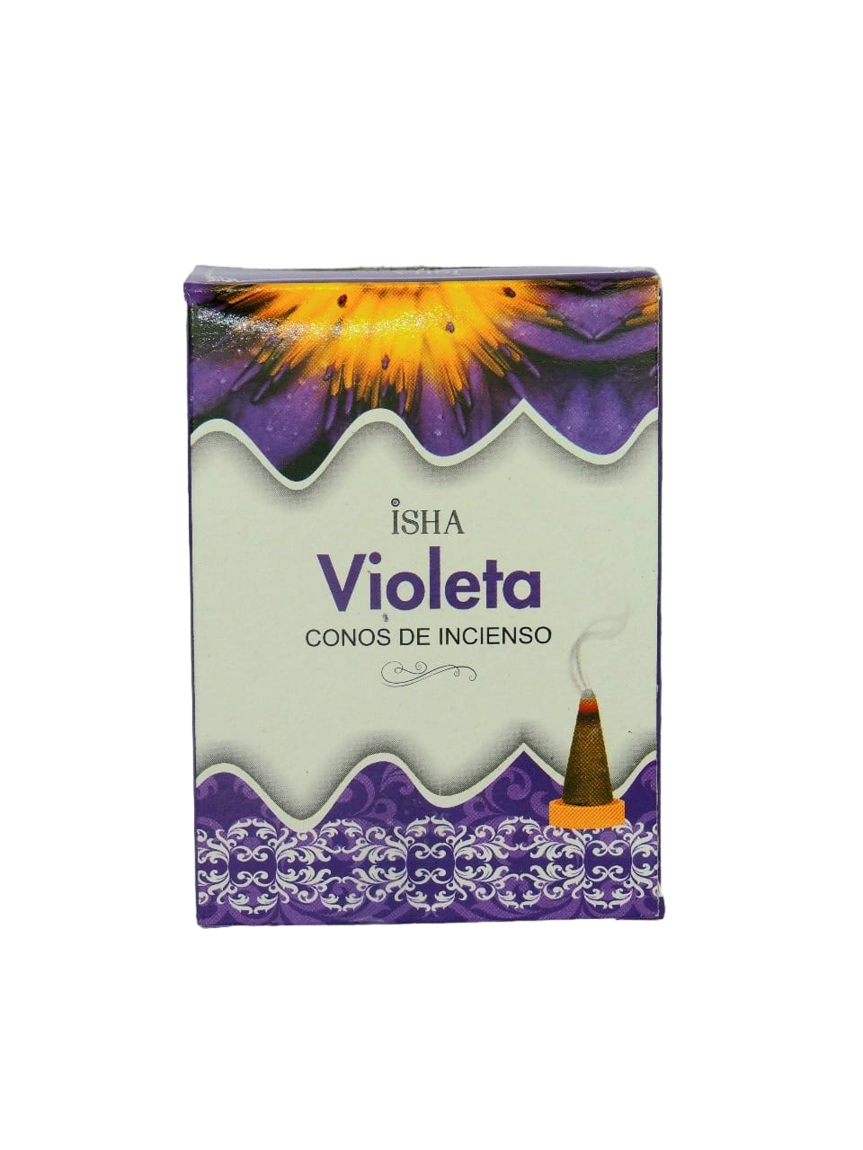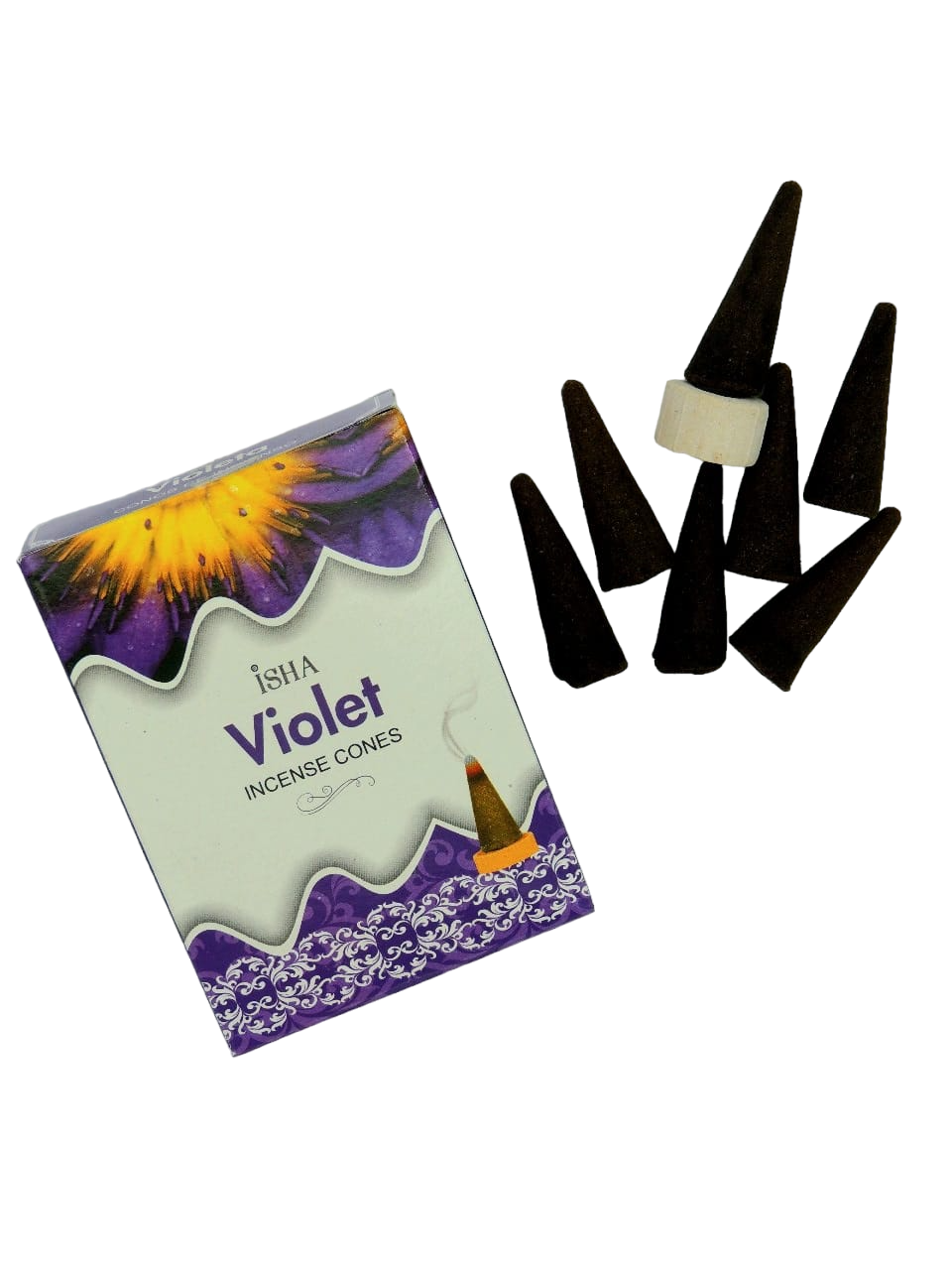 Incienso natural de aroma Violeta, Caja que contiene 14 conos, elaborado en la India.